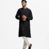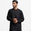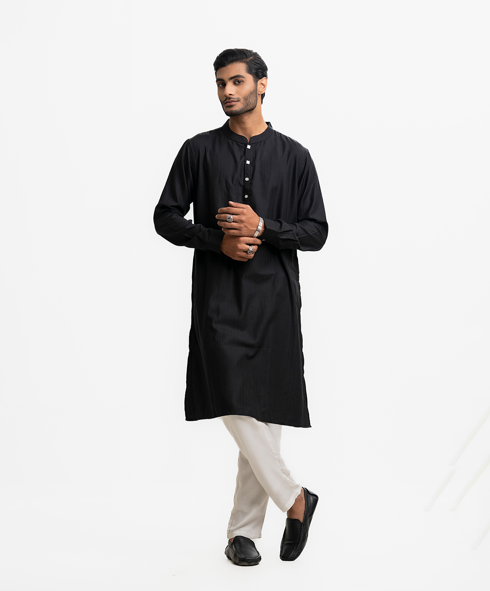 Men’s semi fitted panjabi in jacquard fabric. Mandarin collar with metal buttons on the placket & full sleeves.