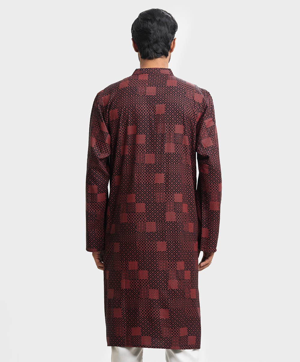 Black Viscose Semi-Fitted Panjabi