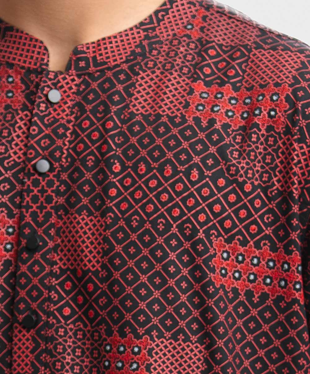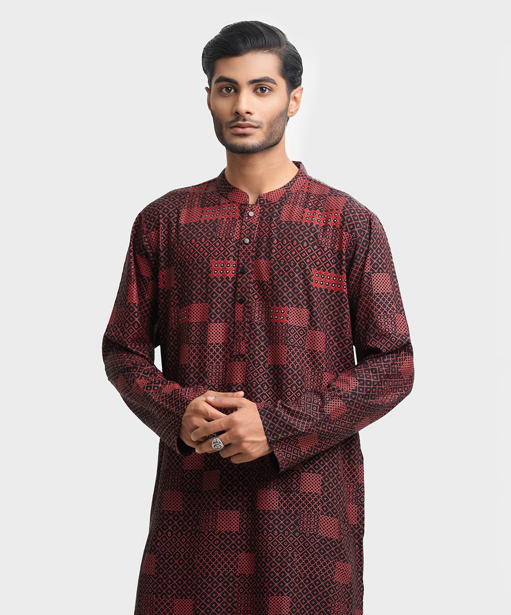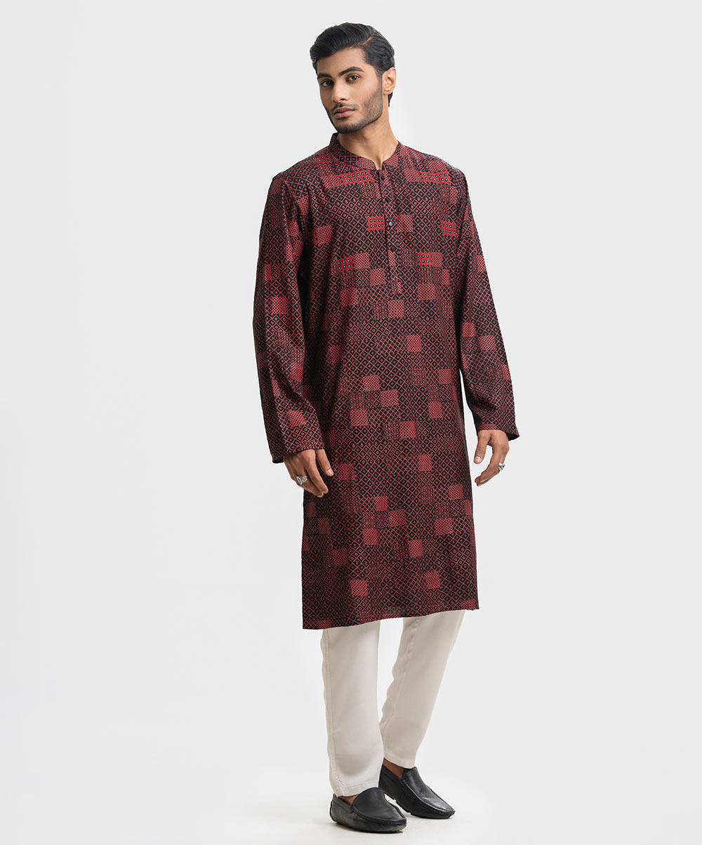 Semi-fitted viscose panjabi with embroidery on the chest.