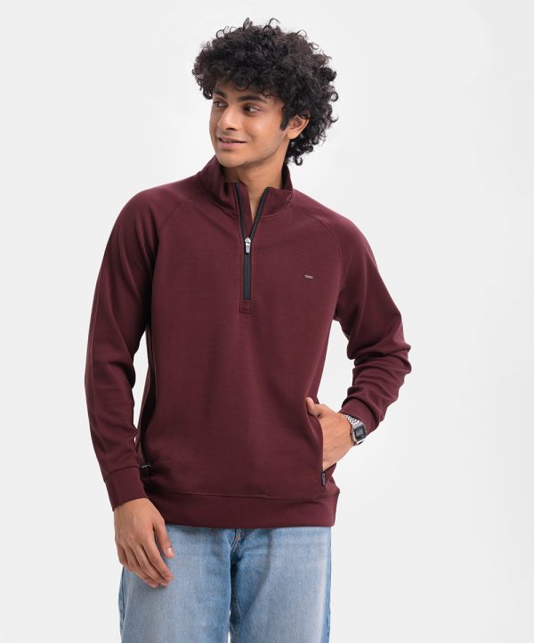 Men’s long-sleeved sweatshirt in interlock knit fabric. Turtleneck neck with a zipper opening and two zipper pockets at sides.