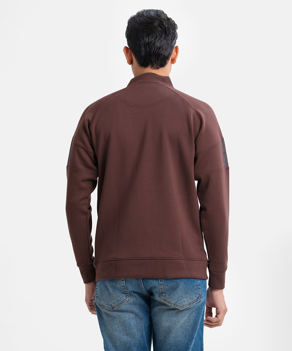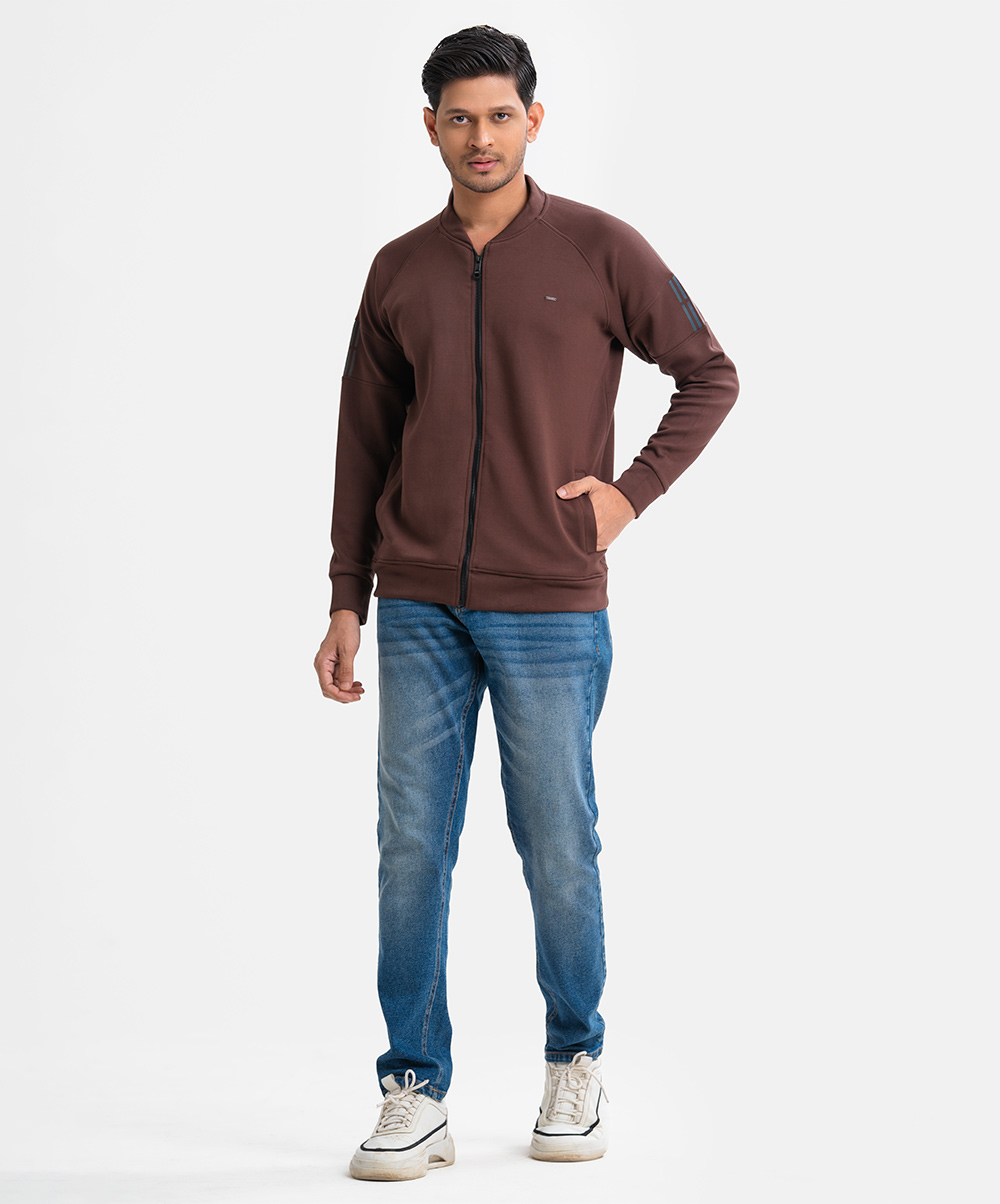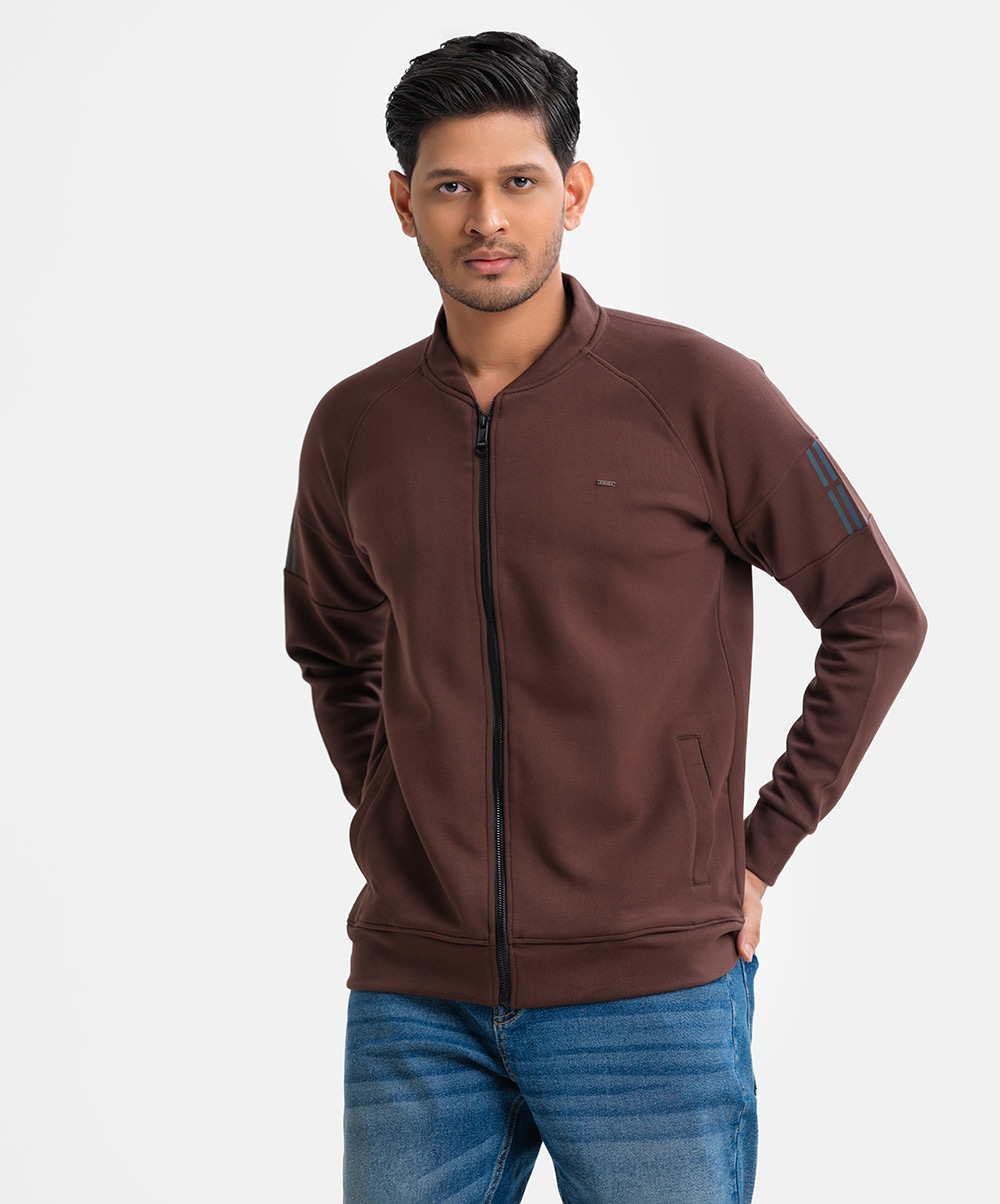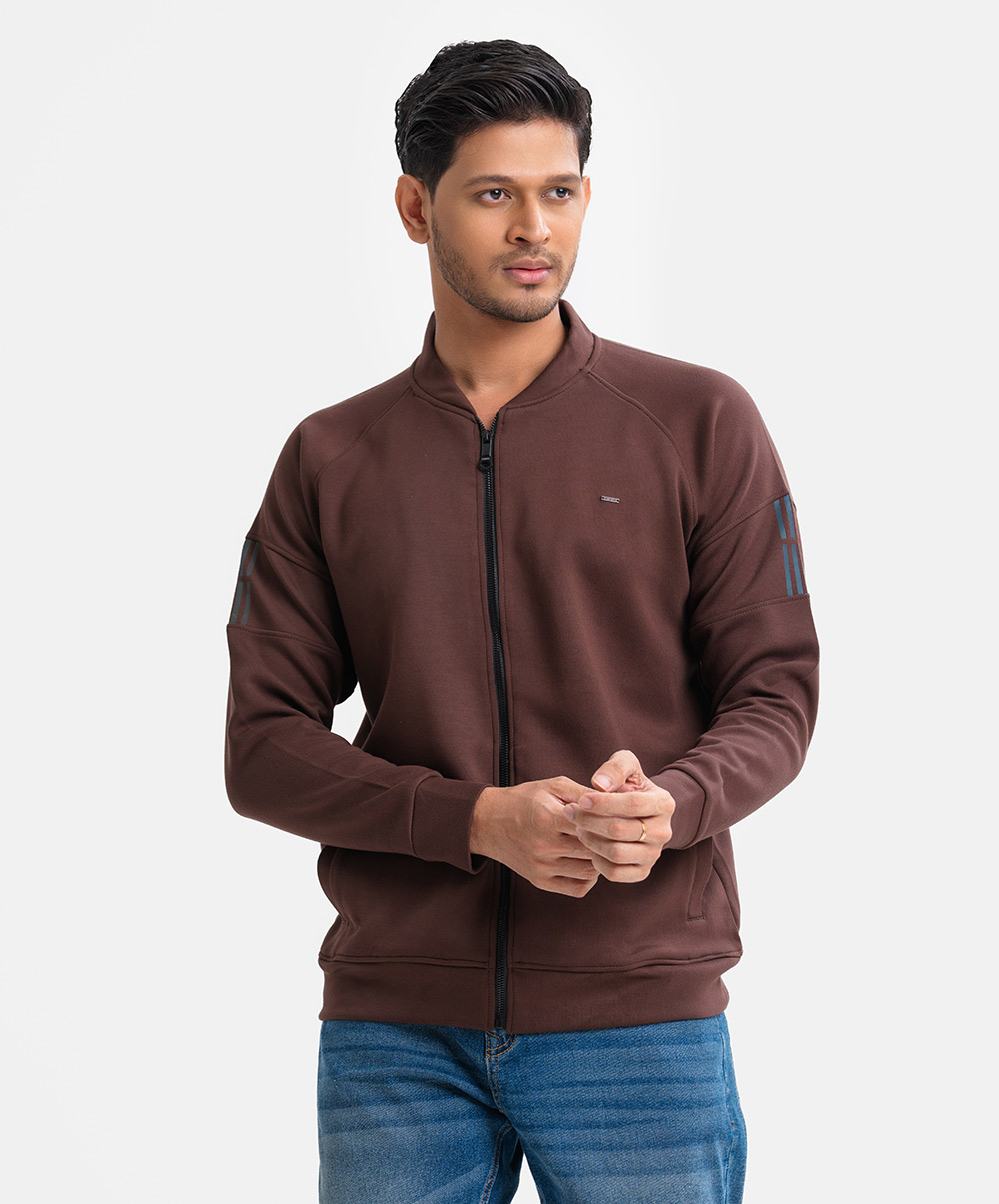Men’s winter sweat shirt in interlock knit fabric. Full sleeves, classic rib collar. Zipper opening with kangaroo pockets. Reflecting stripes at sleeves.