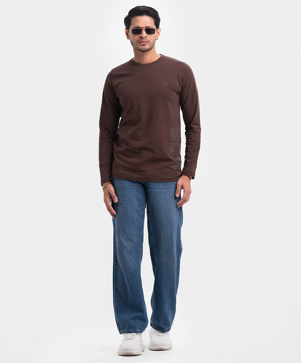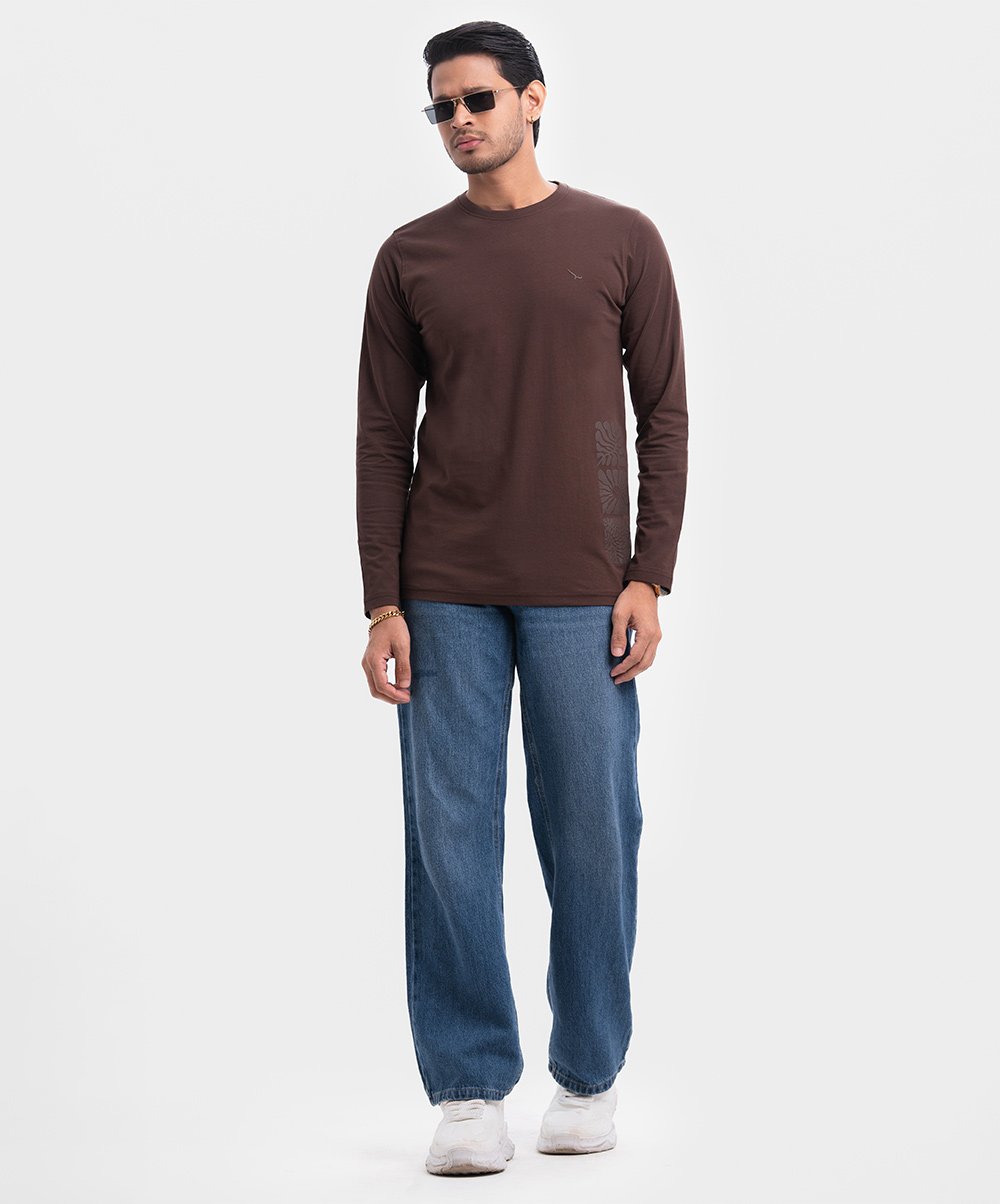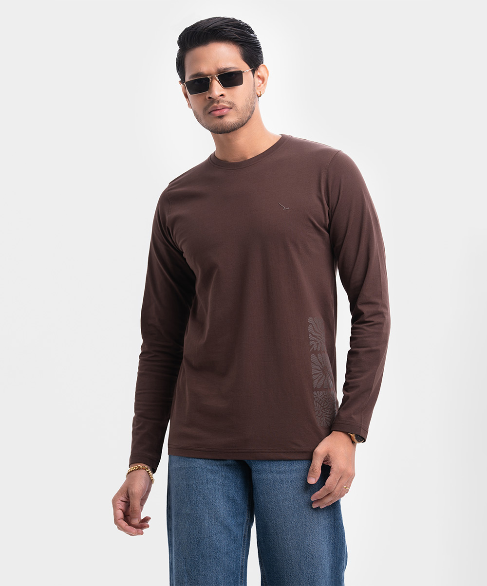 Men’s t-shirt in cotton single jersey fabric. Crew ribbed neck, long sleeves and print on the chest.