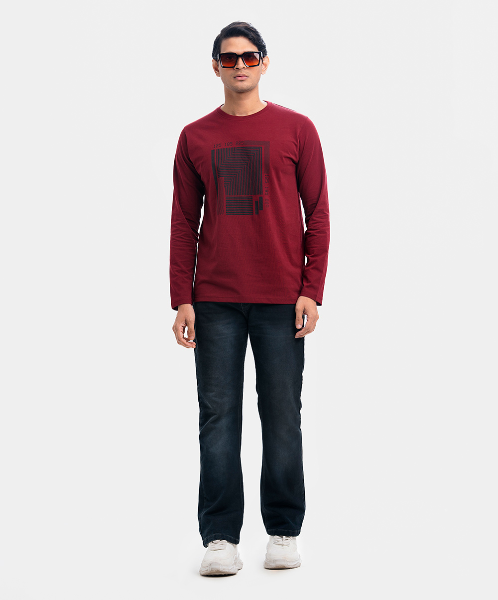 Men’s winter t-shirt in cotton single jersey fabric. Crew ribbed neck, long sleeves and print on the chest.