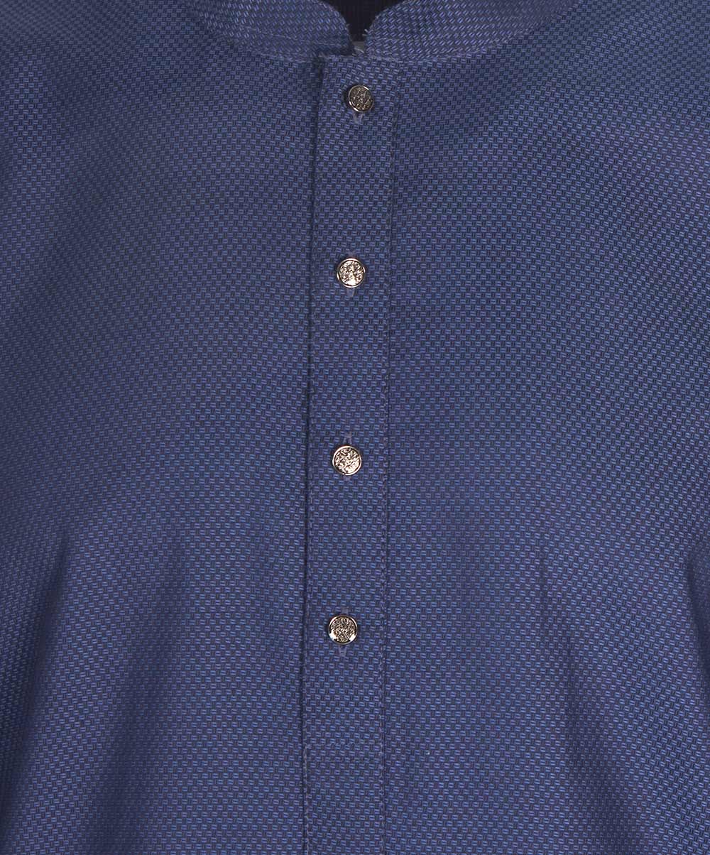 Blue fitted cotton panjabi with allover print.