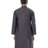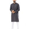 Black fitted Panjabi in Jacquard Cotton fabric. Designed with a mandarin collar and matching metal buttons on the placket.