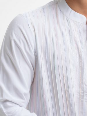 Men’s printed panjabi in viscose fabric. Mandarin collar, and inseam pockets.