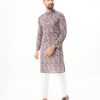 Gray Brown fitted Panjabi in printed Cotton fabric. Designed with a mandarin collar and matching metal buttons on the placket.