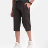 Men’s three-quarter Bermuda pants in twill fabric. Features two zippered side pockets and one back pocket. Concealed elasticated waistline with drawstring.