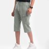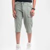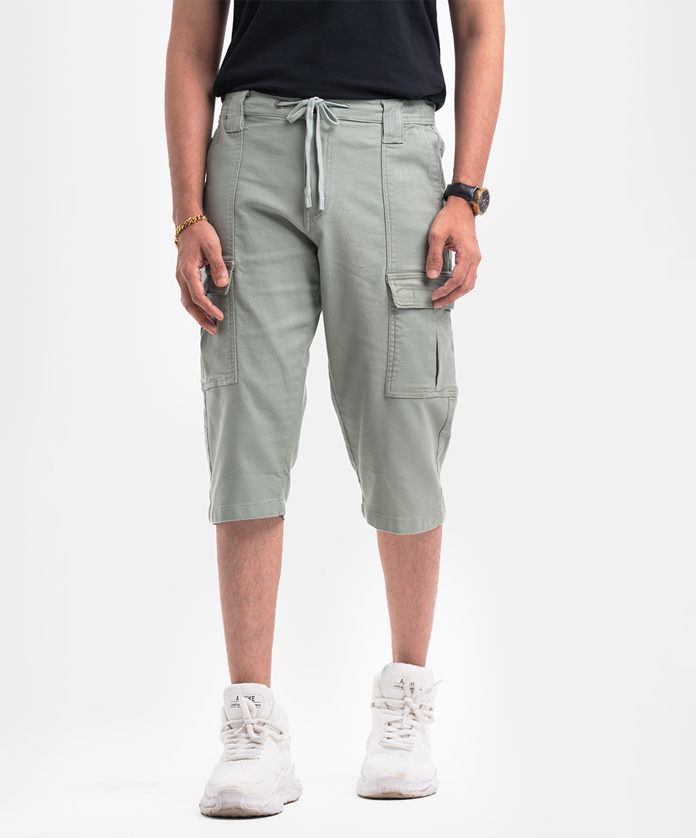 Men’s three-quarter Bermuda pants in cotton blended fabric. Features two zippered side pockets and two back pockets. Concealed elasticated waistline with drawstring.
