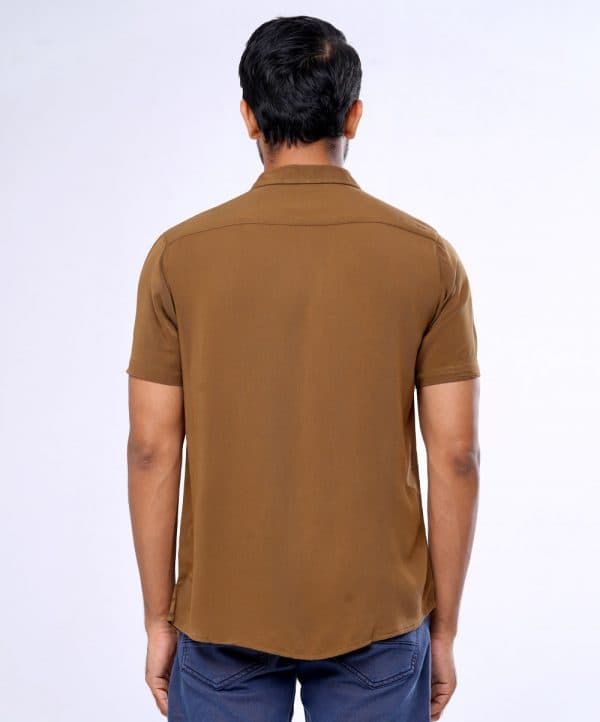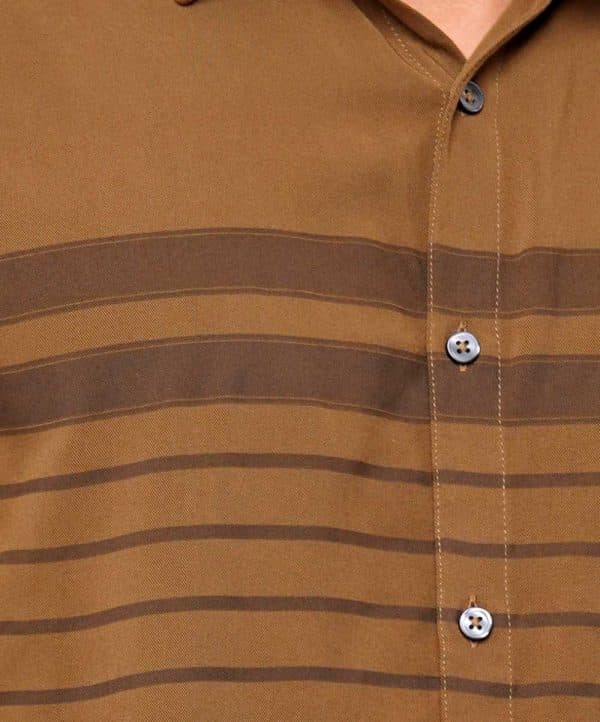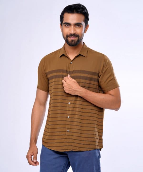 Brown stripe casual Shirt in Viscose fabric. Designed with a classic collar and short sleeves.