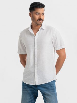 White Cotton Short Sleeve Casual Shirt