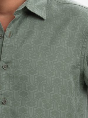 Men’s abstract printed casual shirt in cotton fabric. Cuban collar and short sleeves.