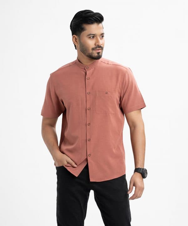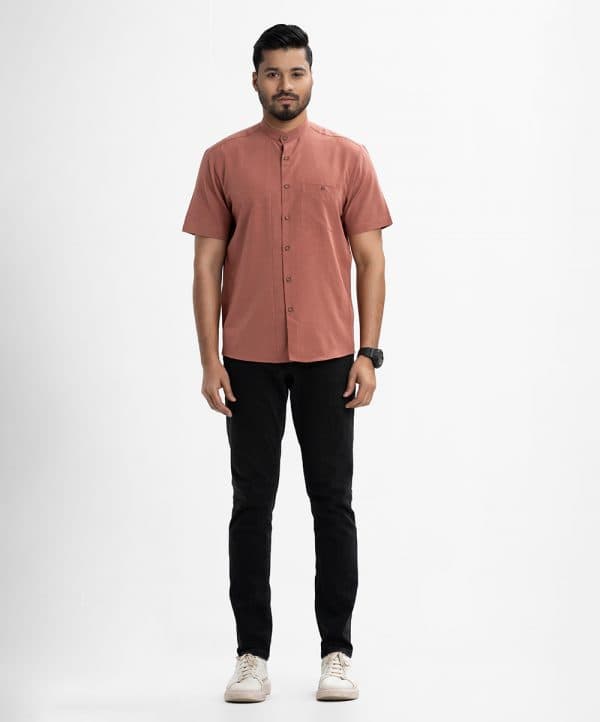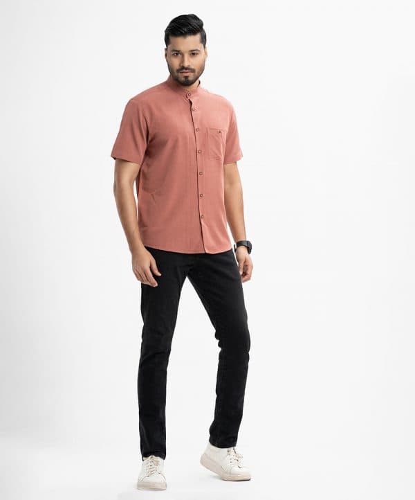 Men’s short-sleeved casual shirt in blended fabric. Classic collar, button fastening at the front and Side pocket.