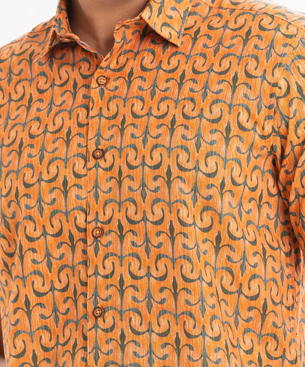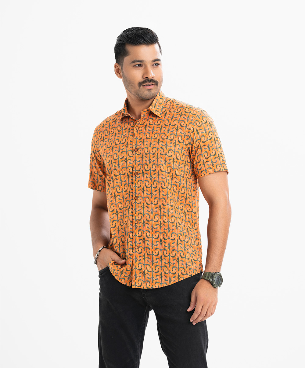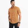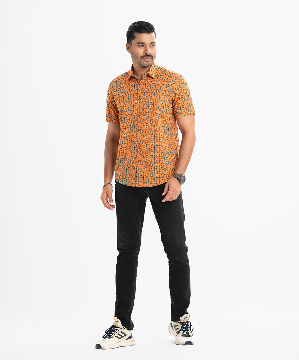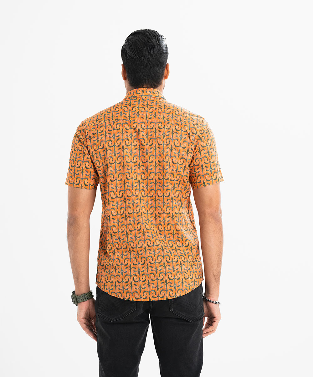 Men’s printed short-sleeved casual shirt in cotton fabric. Classic collar, button fastening at the front.