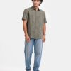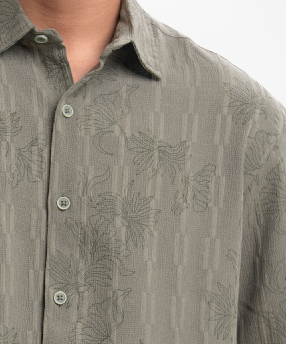 Short-sleeved casual shirt in textured jacquard-rayon fabric. Classic collar and button placket. Yoke at the back.