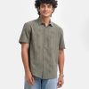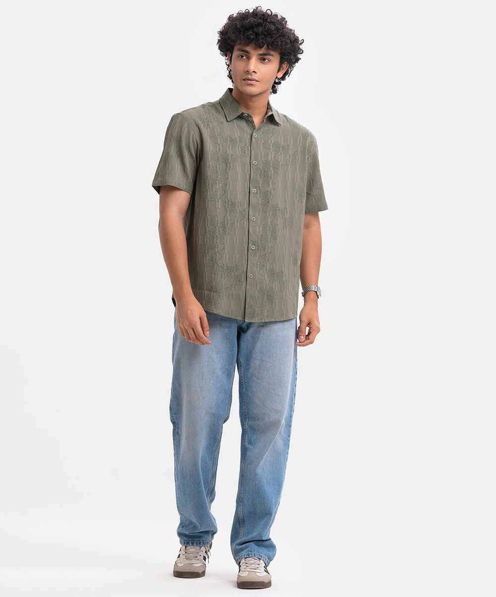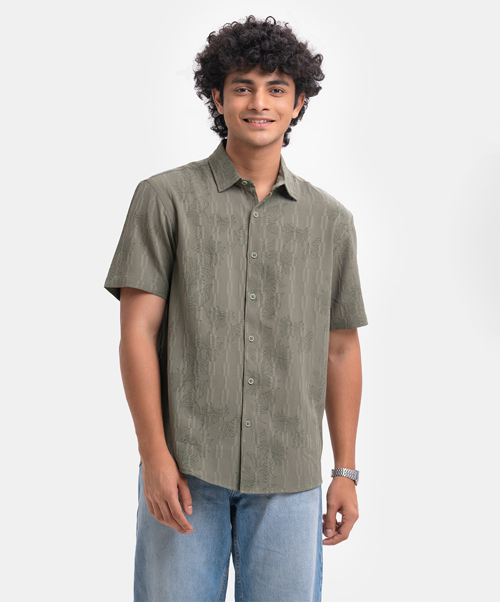 Green Jacquard Rayon Short Sleeve Casual Shirt