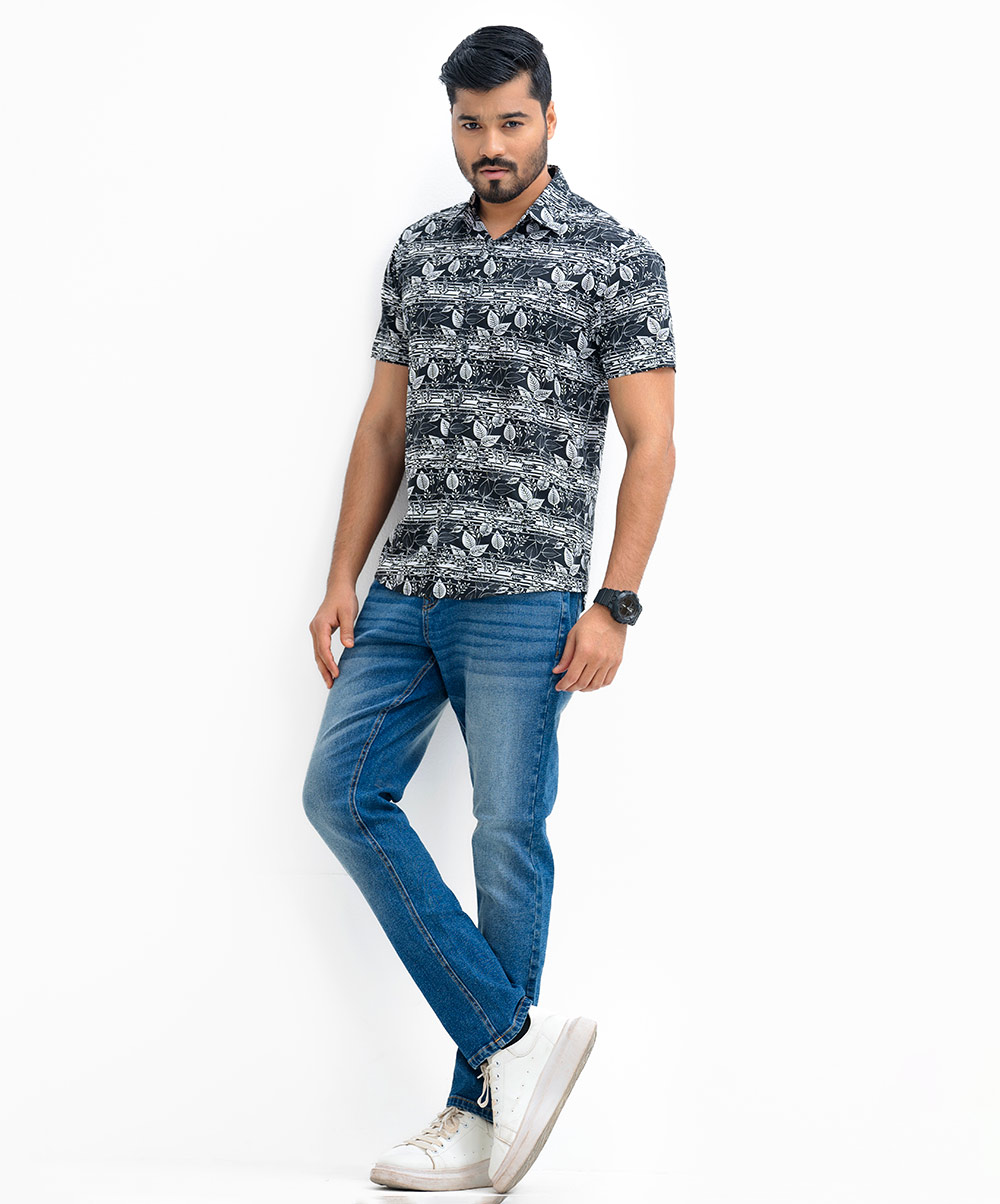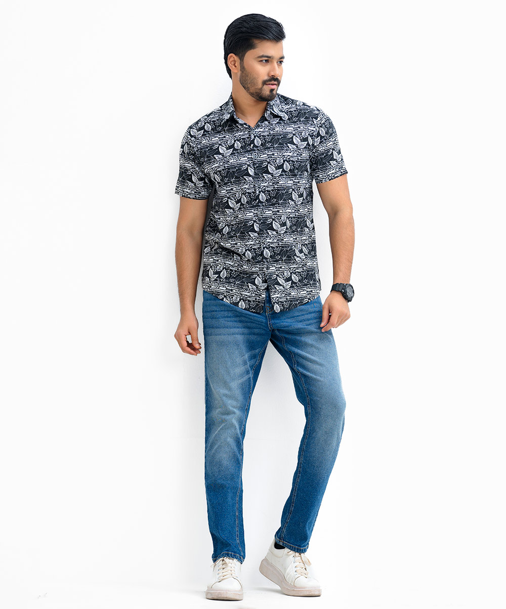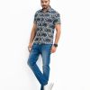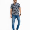 Men’s printed short-sleeved casual shirt in cotton fabric. Classic collar, button fastening at the front.