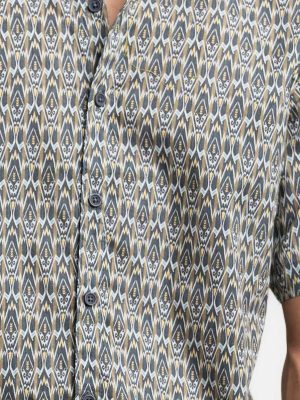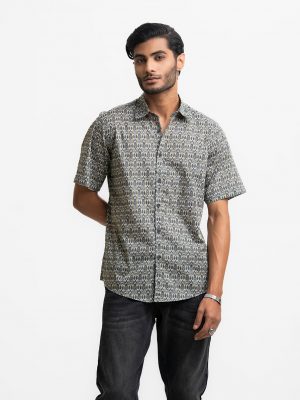 Men’s printed short-sleeved casual shirt in cotton fabric. Classic collar, button fastening at the front