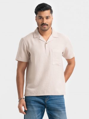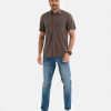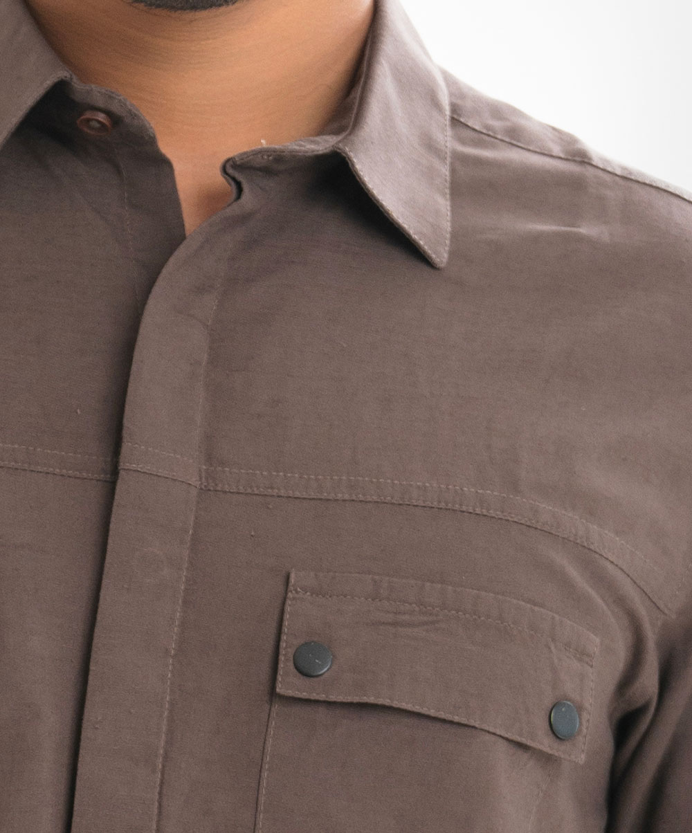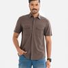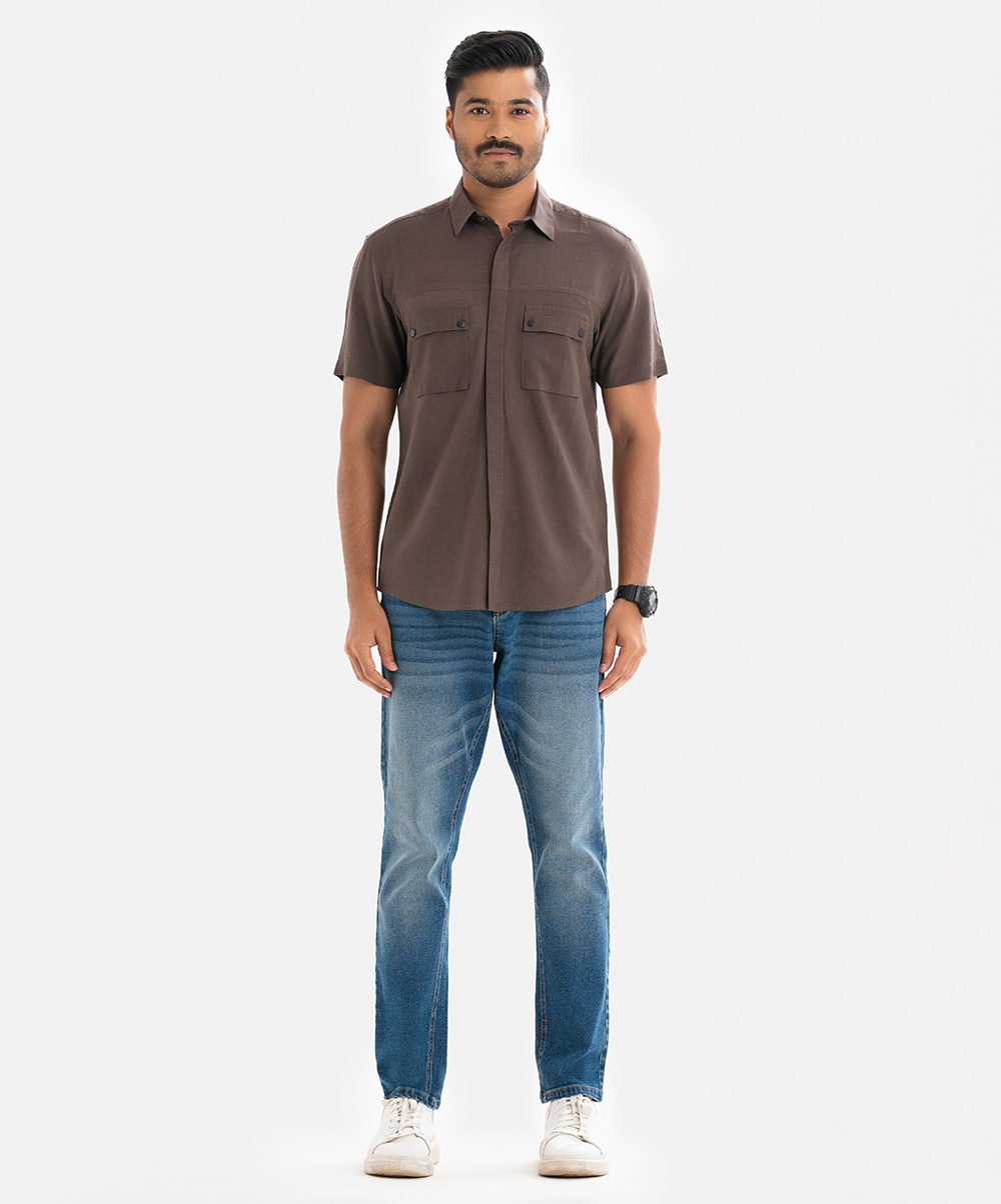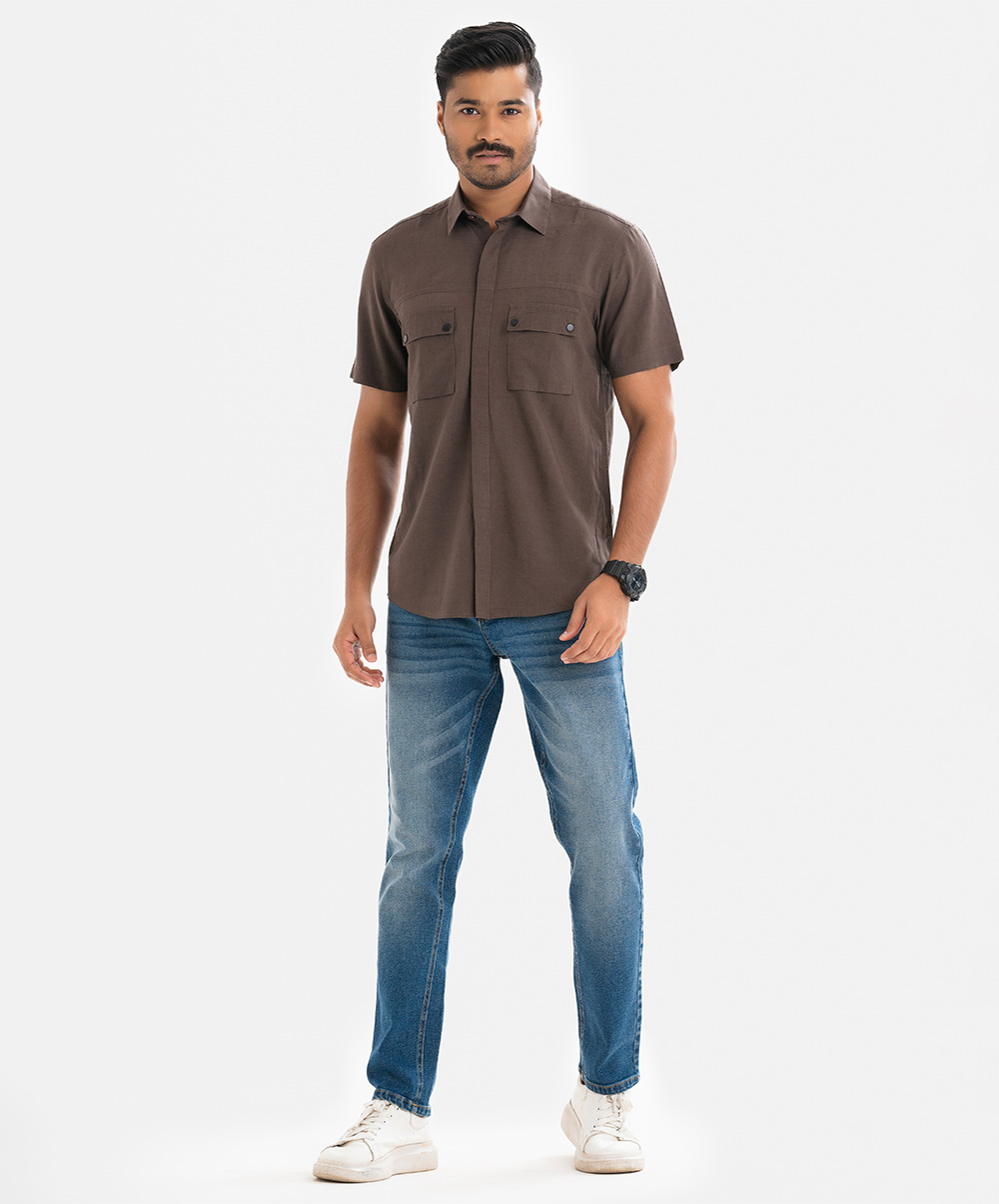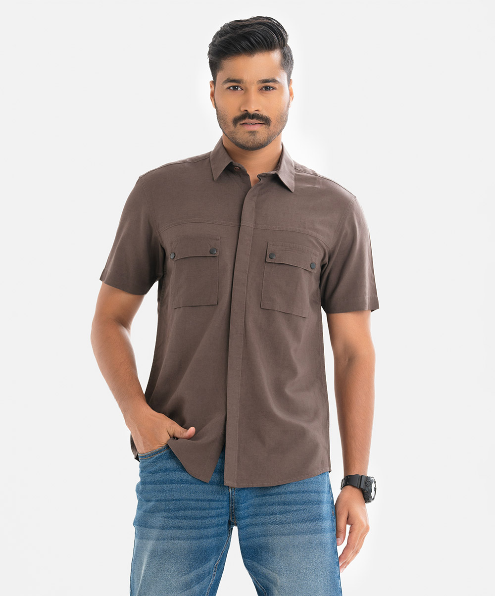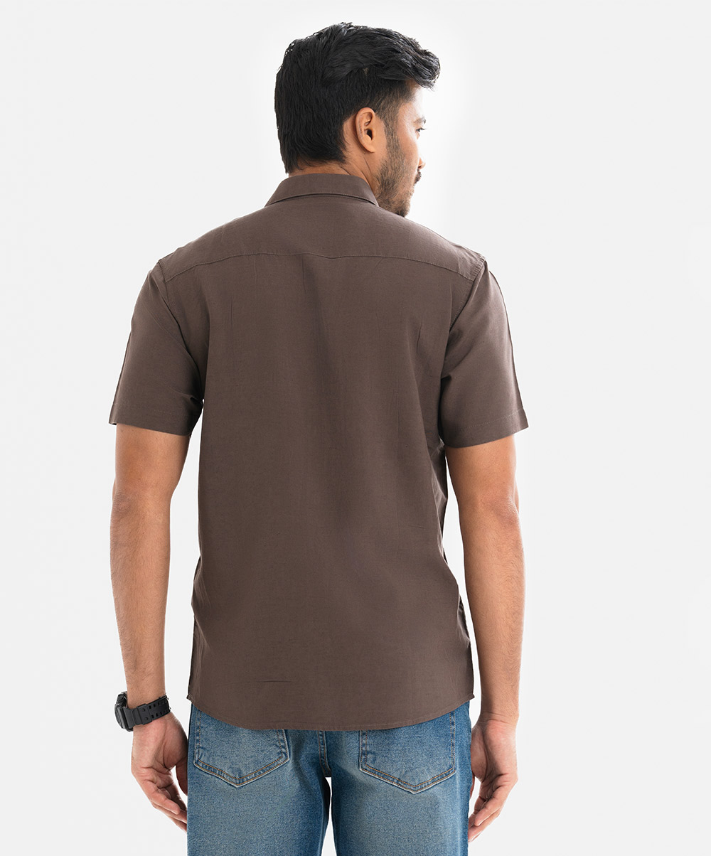 Brown Cotton Short Sleeve Casual Shirt