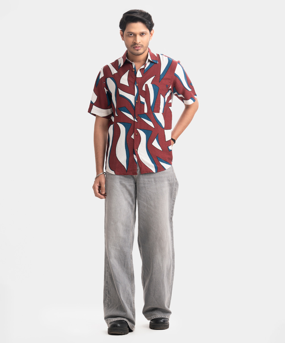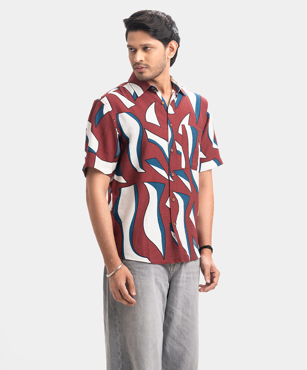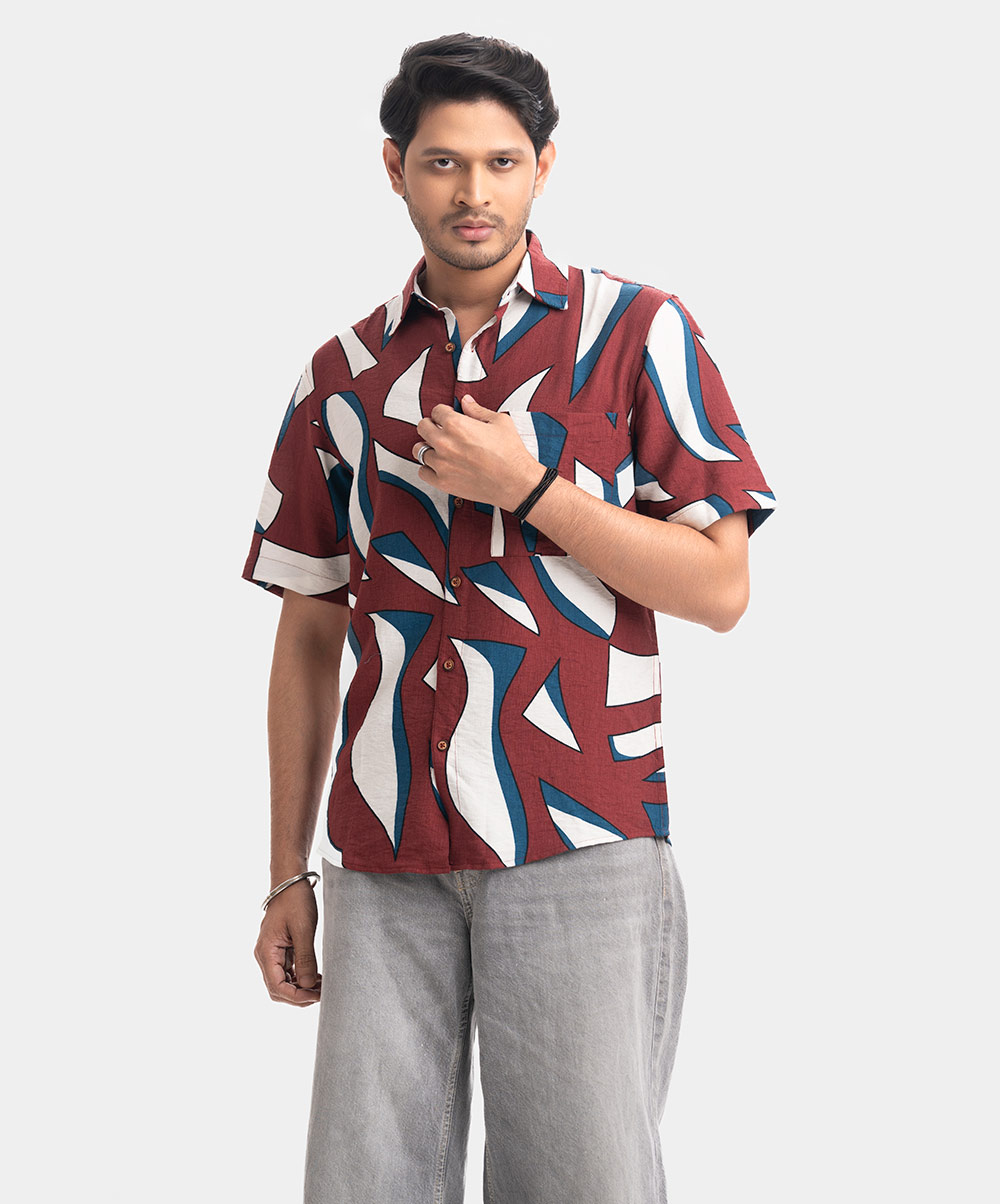 Classic collar casual shirt in breathable cotton-blend fabric. Button up, short-sleeved.
