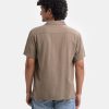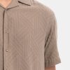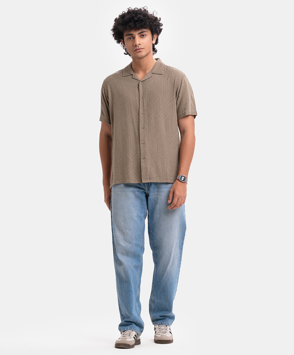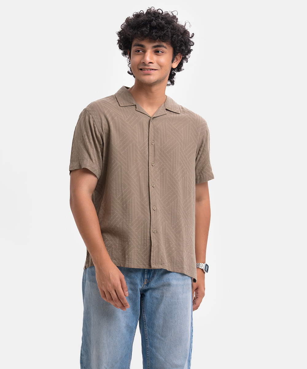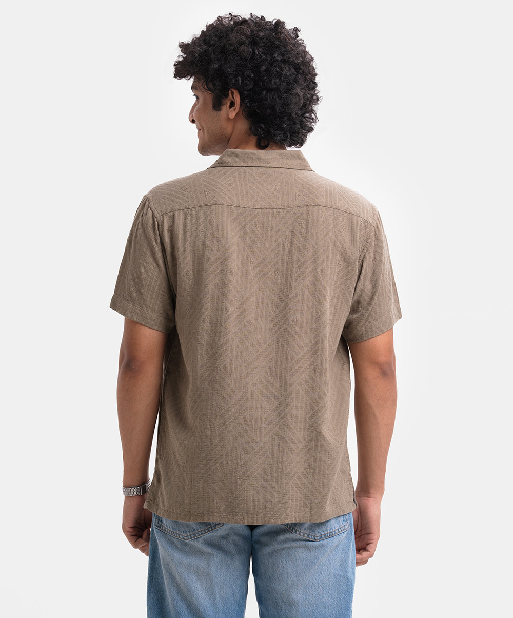 Olive Green Jacquard Short Sleeve Casual Shirt