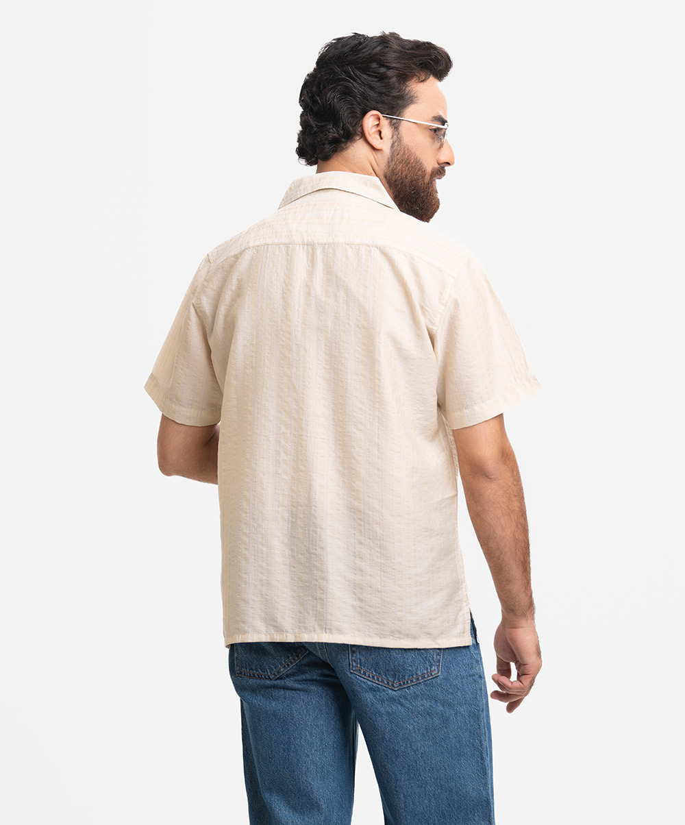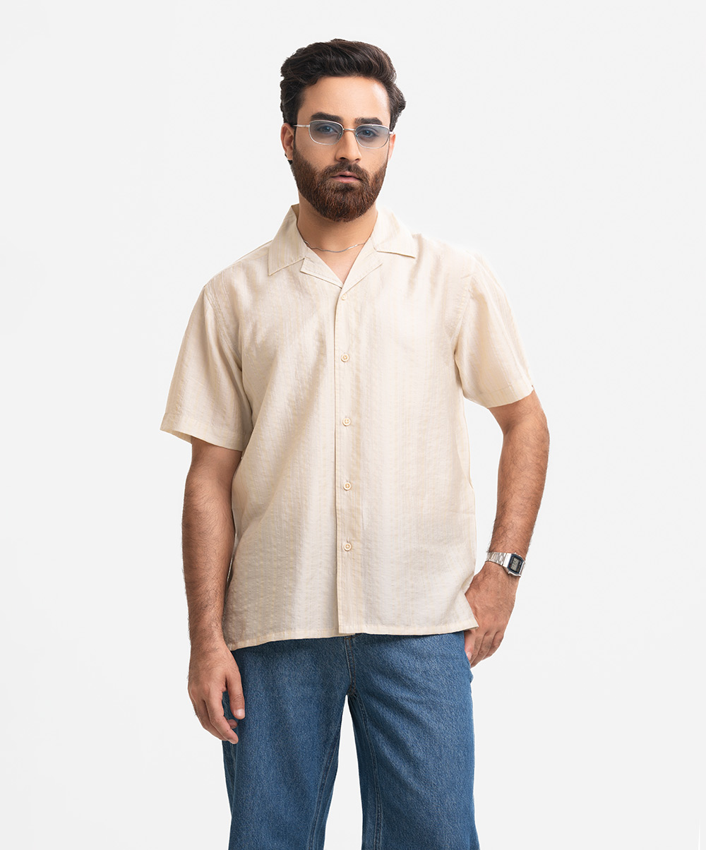 Men’s short-sleeved Cuban collar shirt in lyocell-blend fabric.