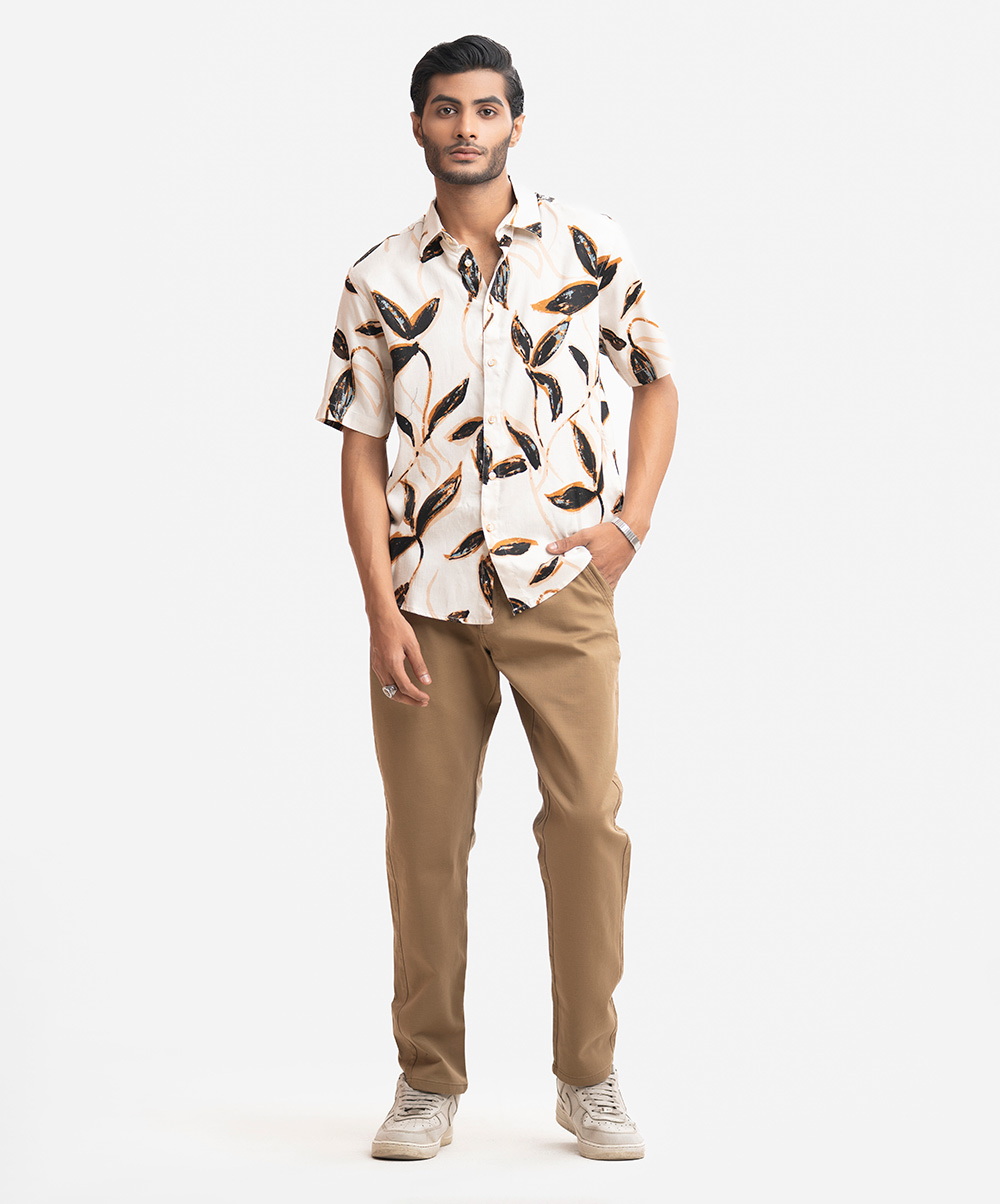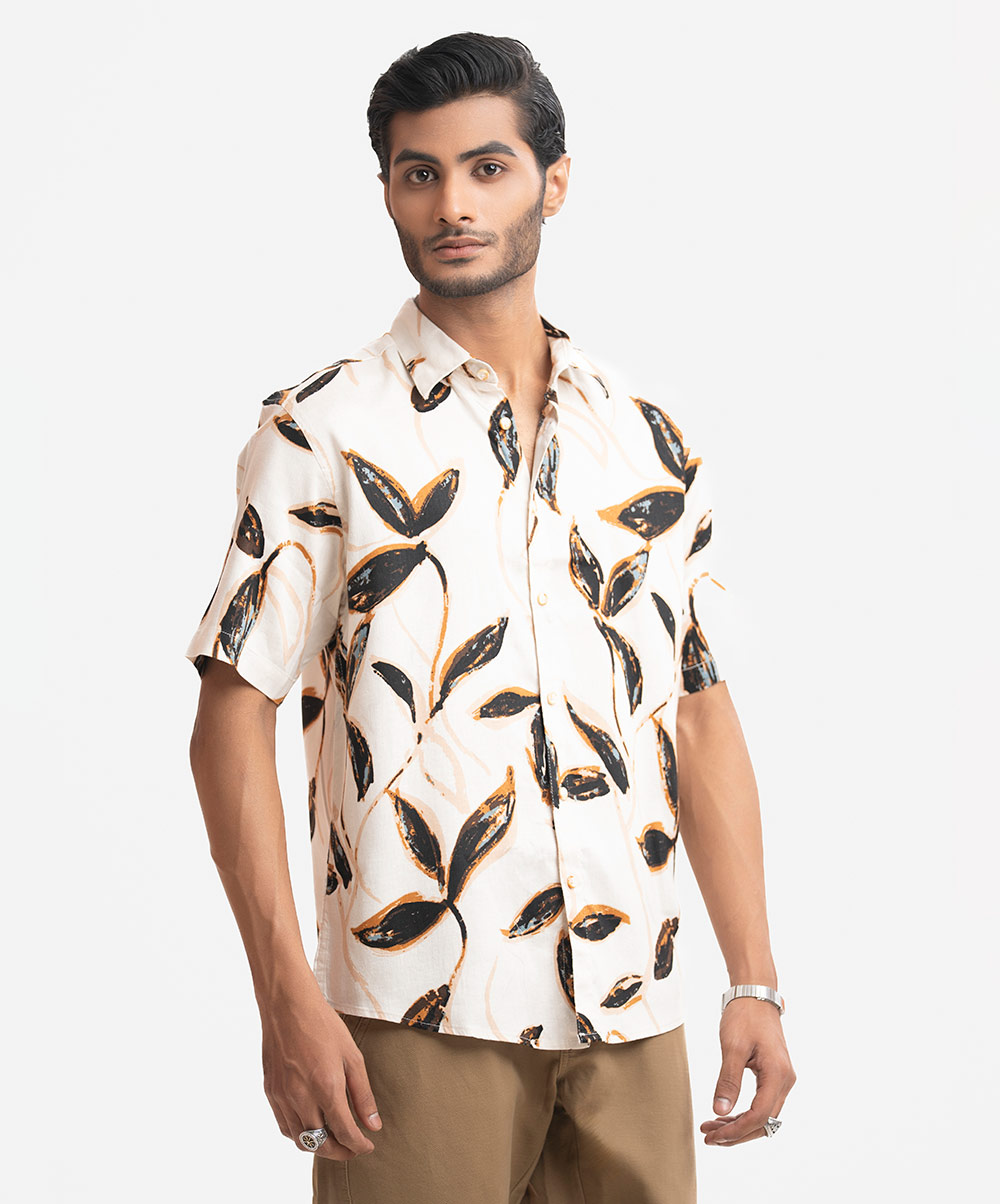 Short-sleeved casual shirt with a classic collar in cotton fabric.