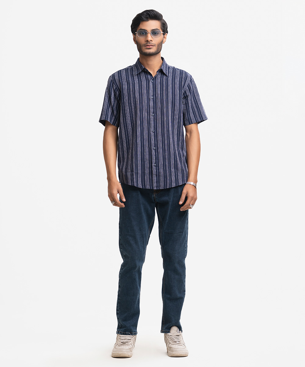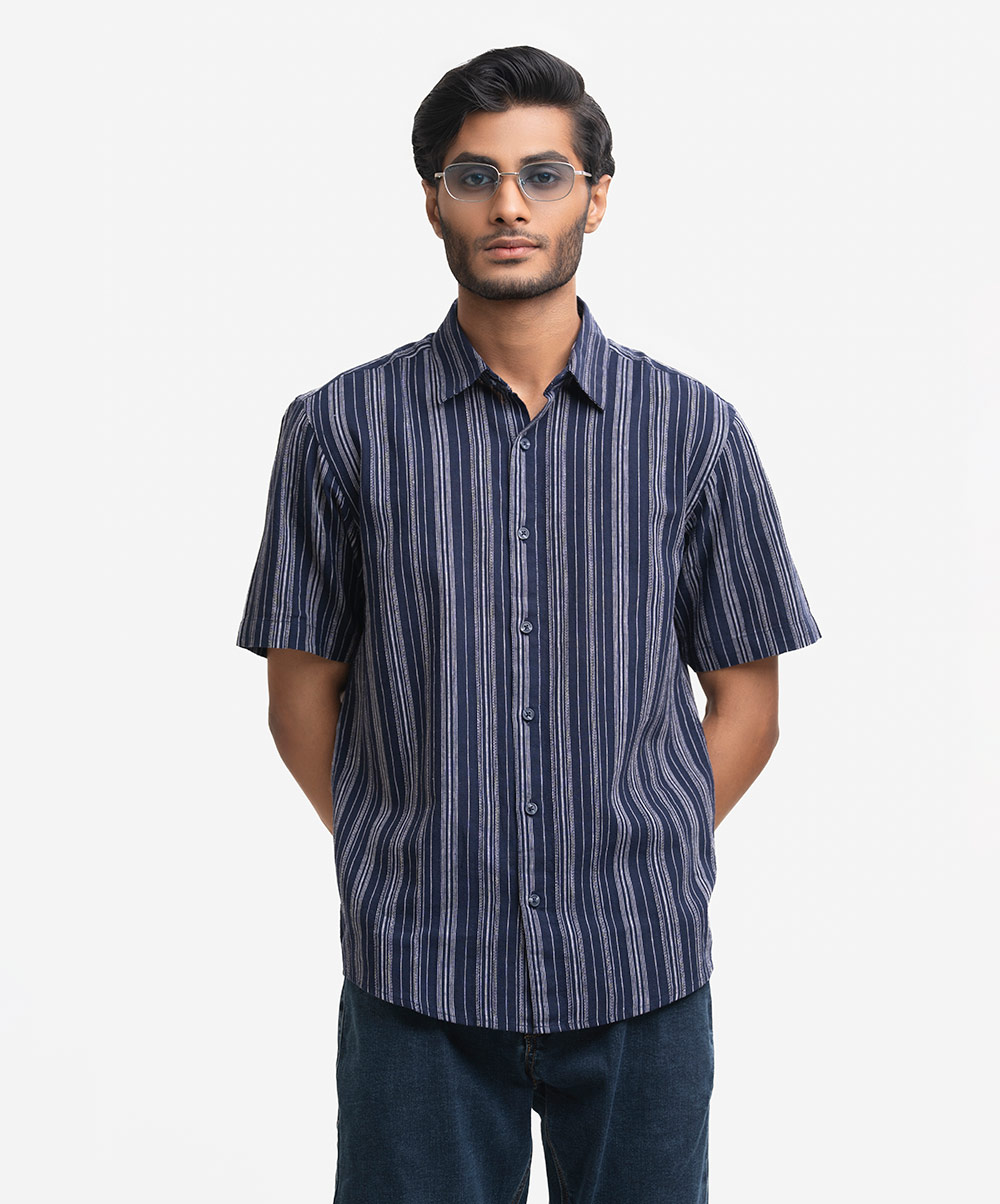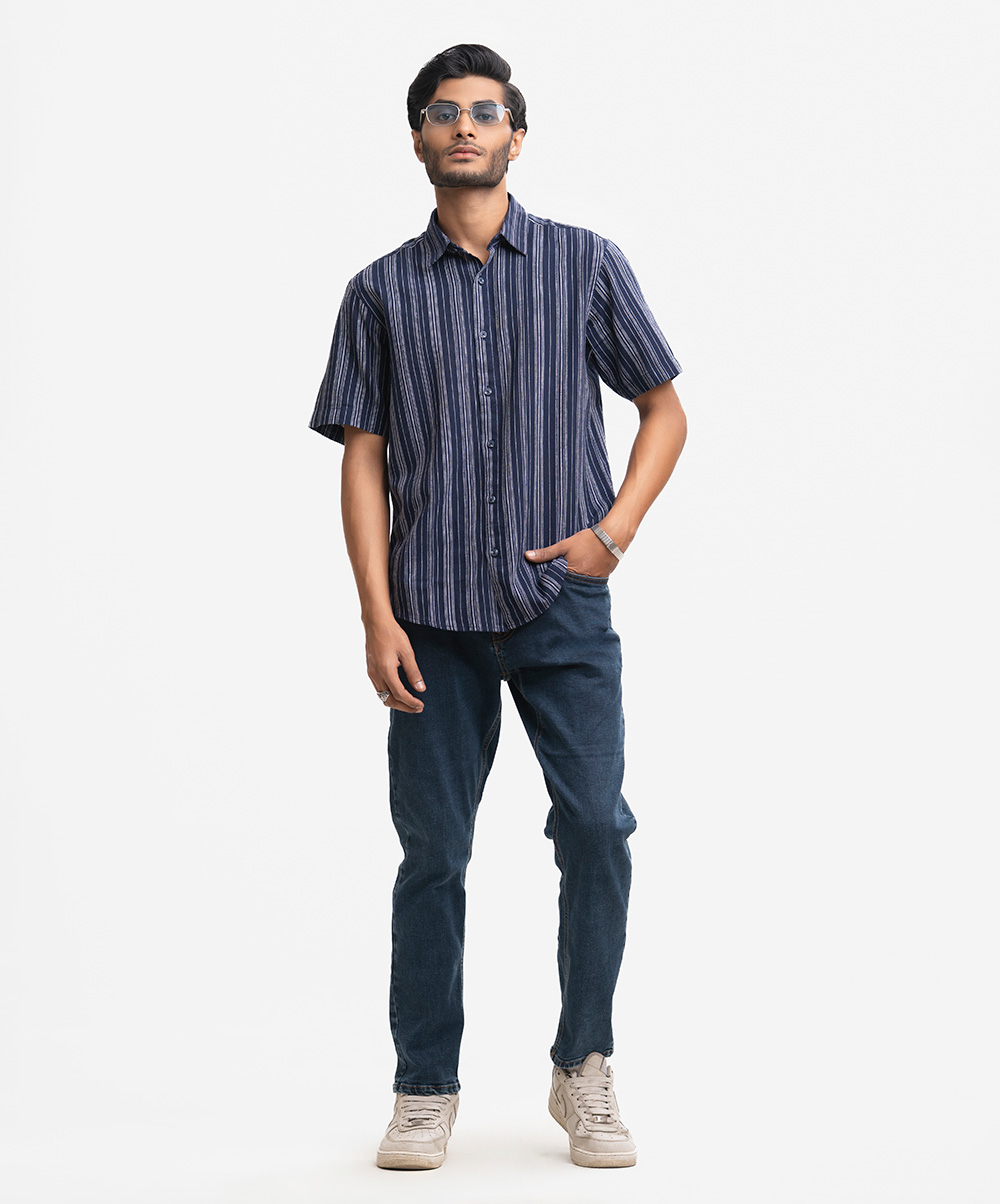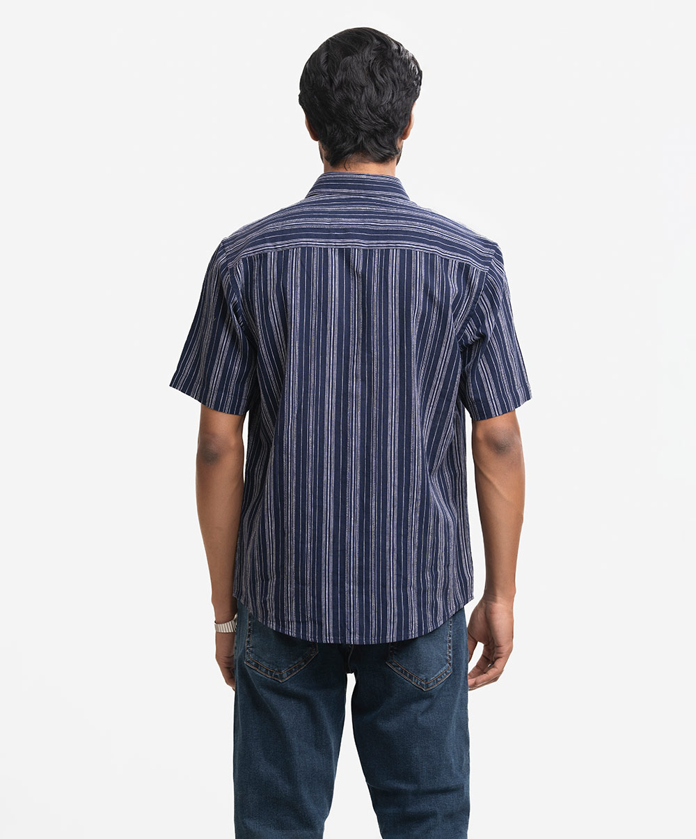 Blue Cotton Stripe Casual Shirt