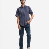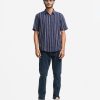 Relaxed fit shirt made of a lightweight cotton striped fabric. Featuring a regular collar and short sleeves, with a button-up front.