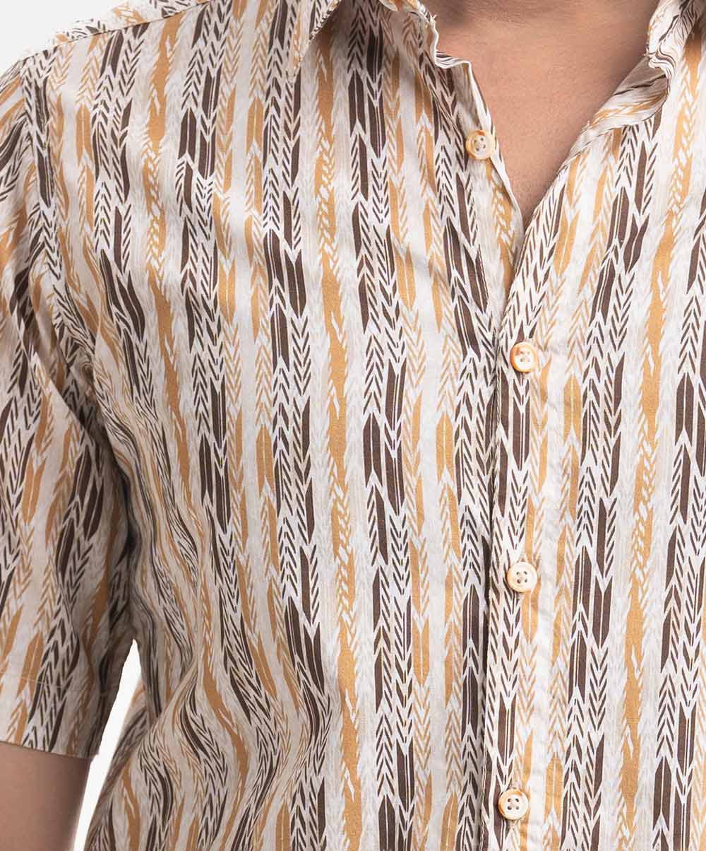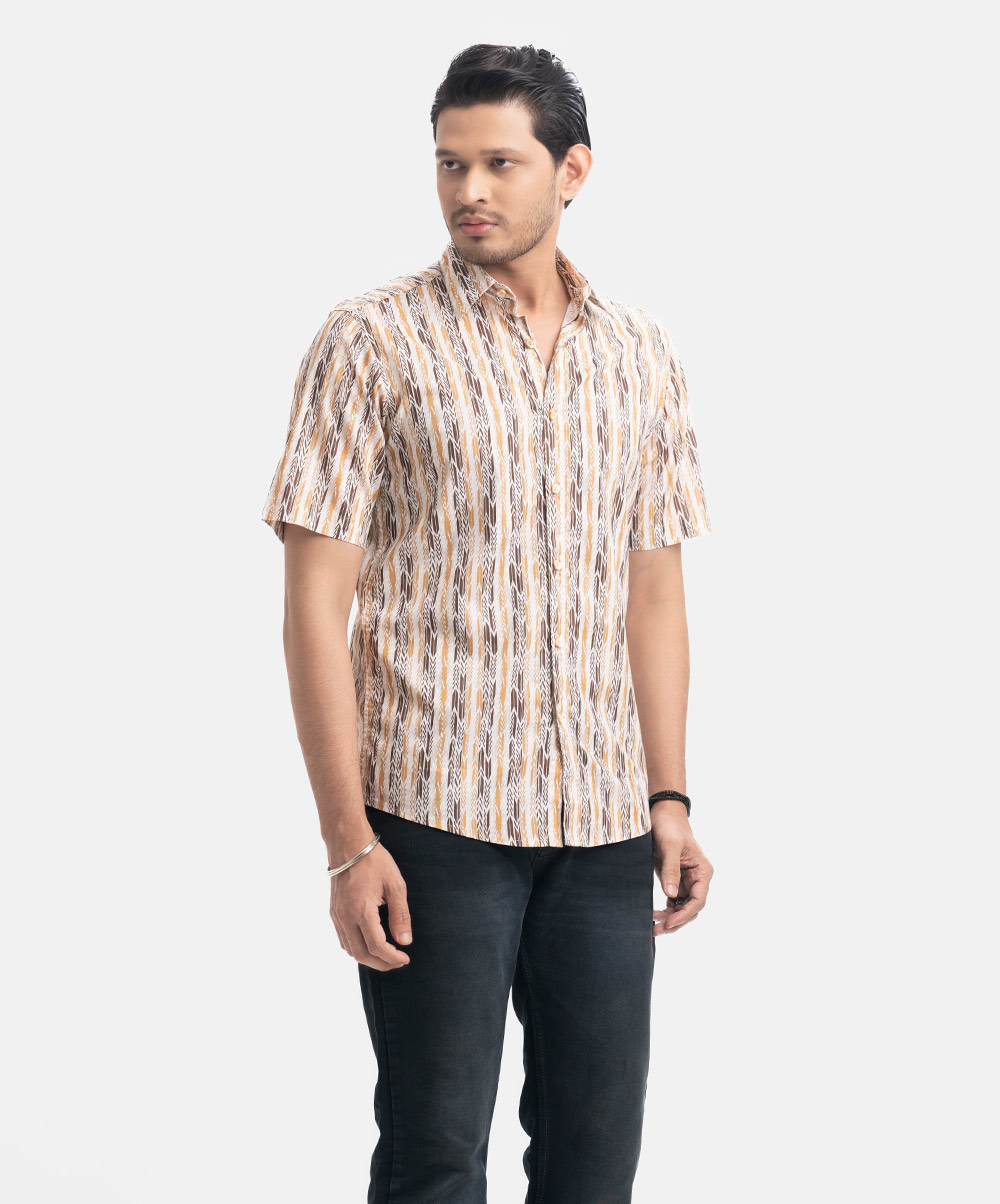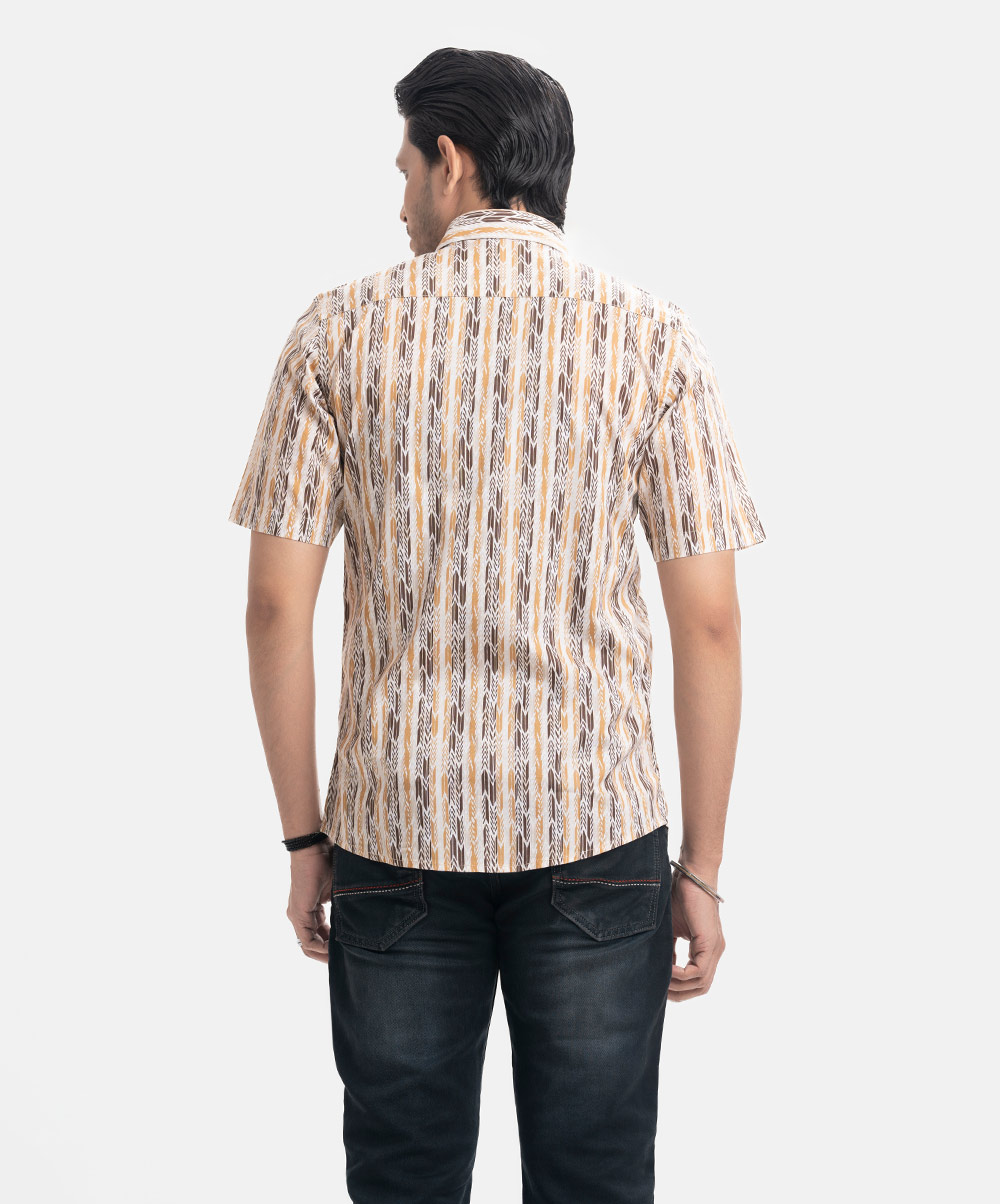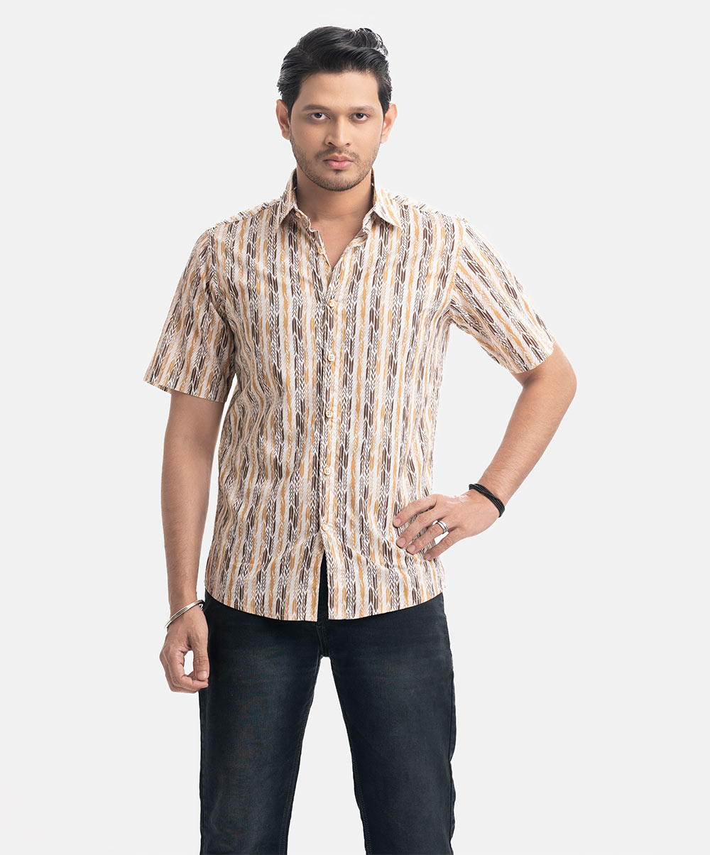 Brown Cotton Short Sleeve Casual Shirt