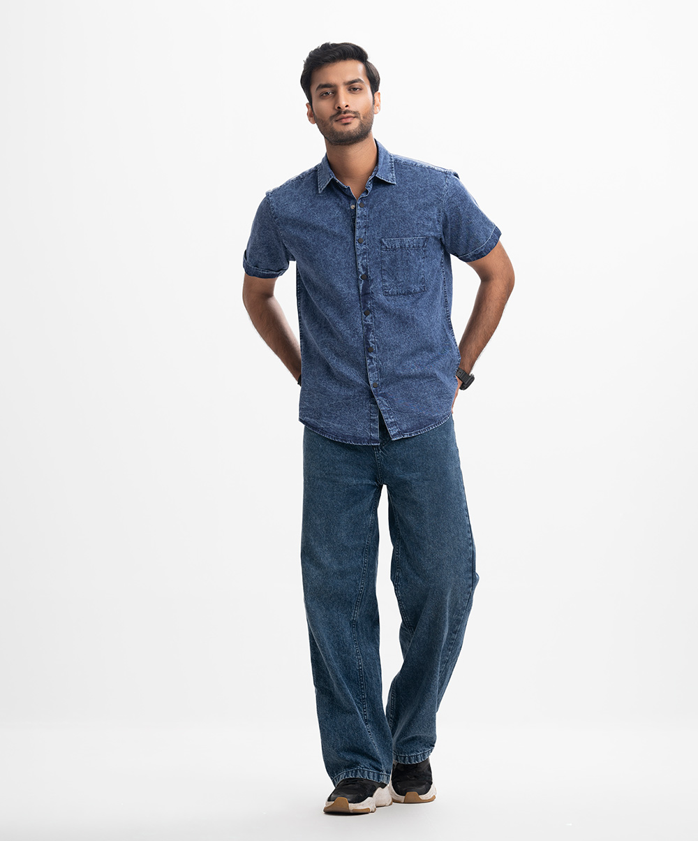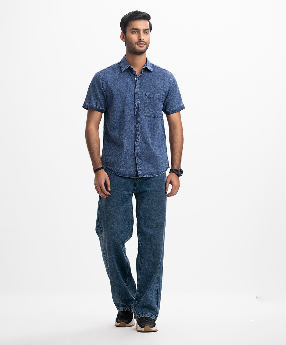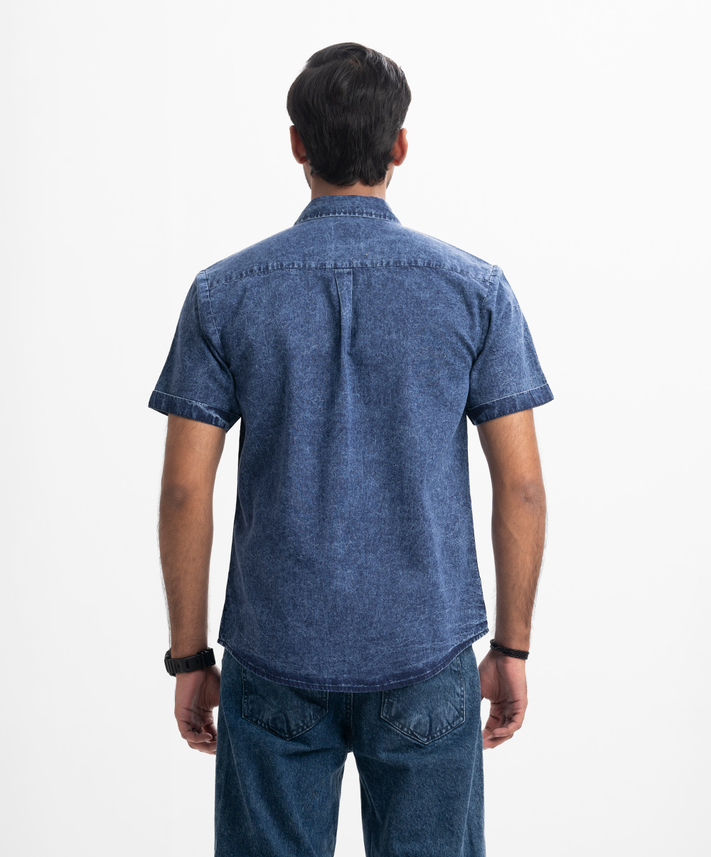 Blue Denim Short Sleeve Casual Shirt