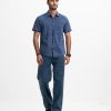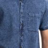Men’s casual shirt in cotton denim fabric. Classic collar, short sleeves and a chest pocket.