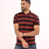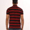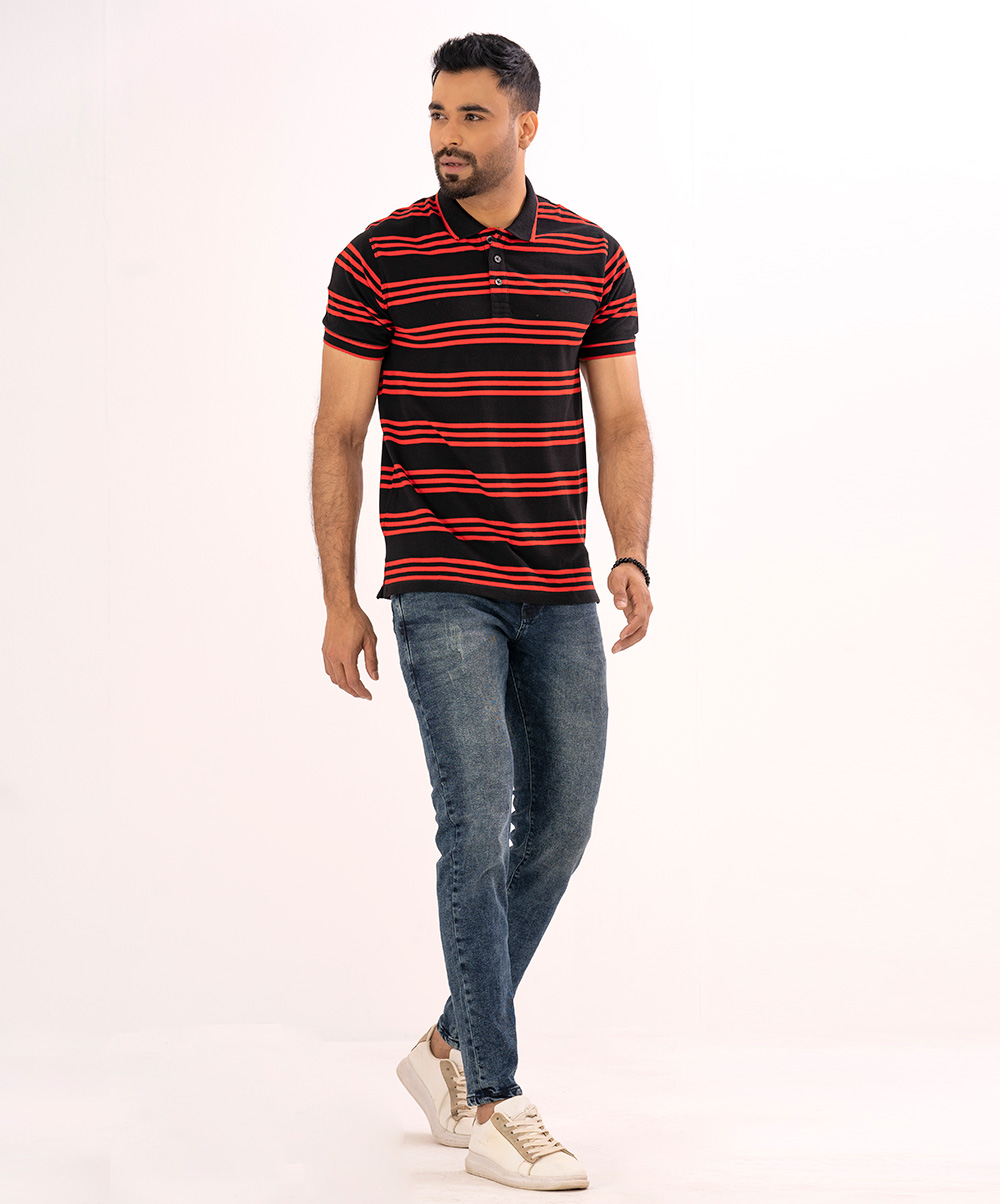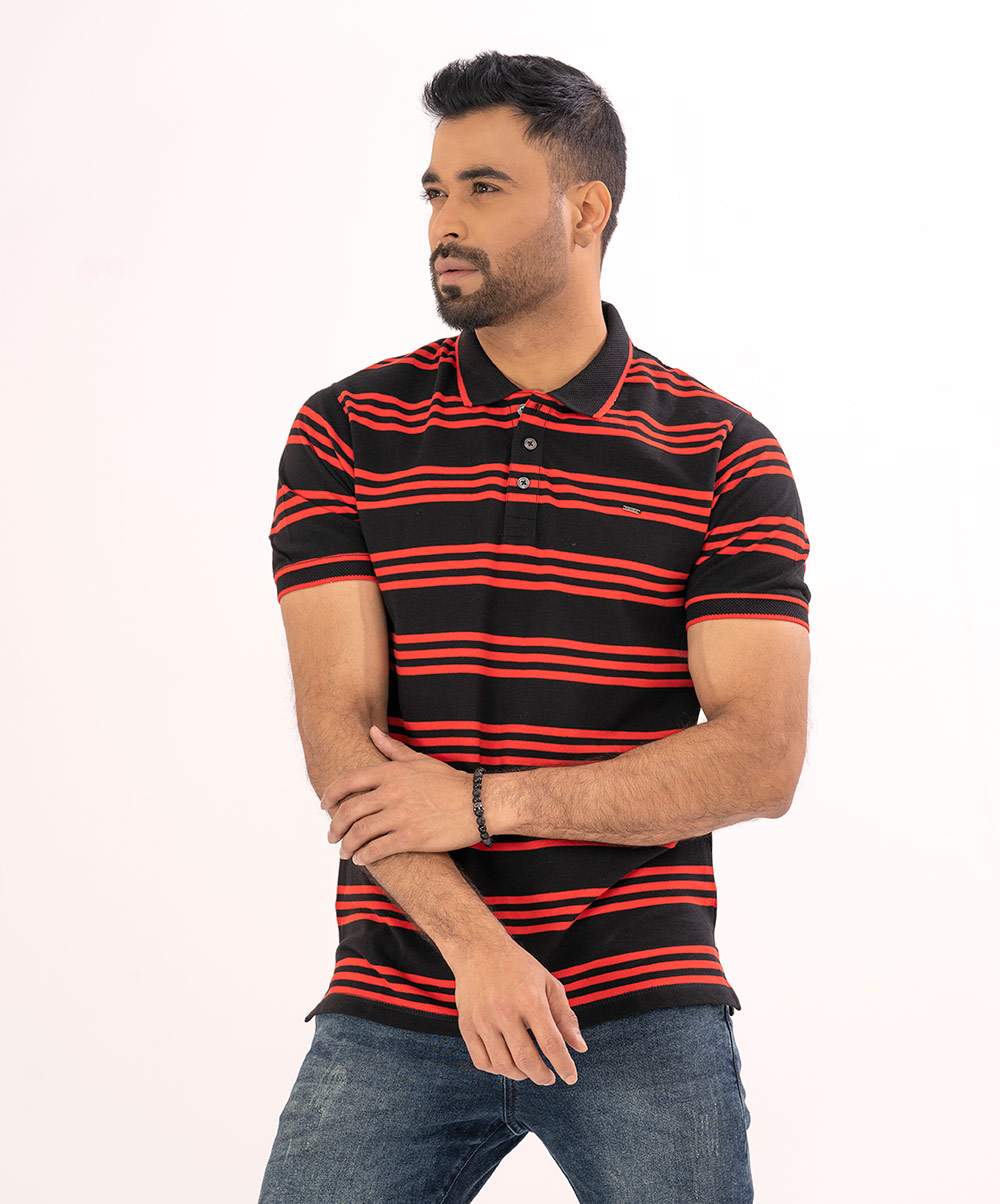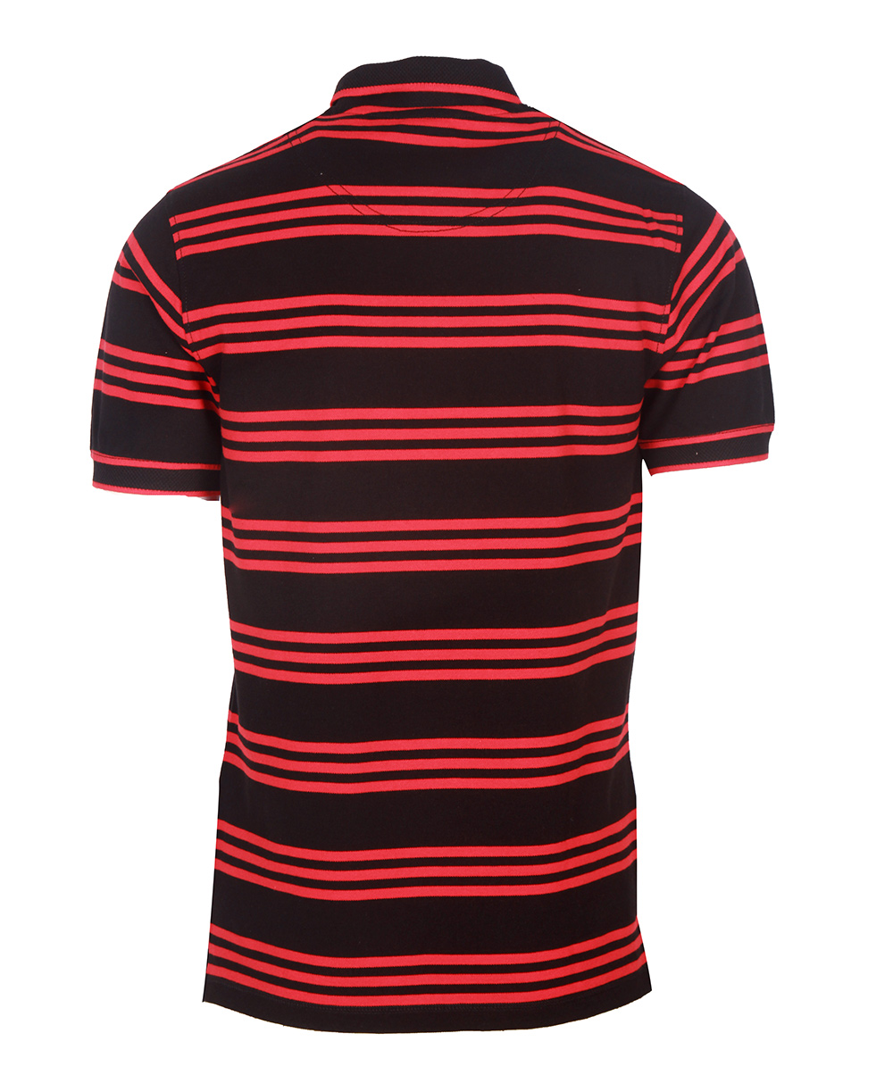 Black and red striped polo crafted in cotton pique fabric, designed with tipping rib collar & cuffs.
