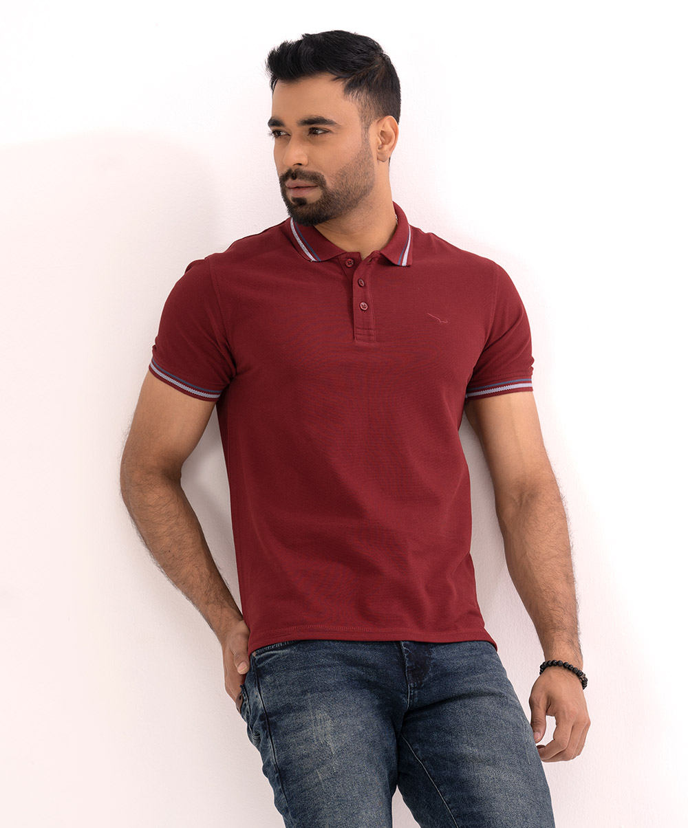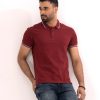 Red solid polo shirt crafted in cotton pique fabric. Designed with contrast tipping collar & cuffs.