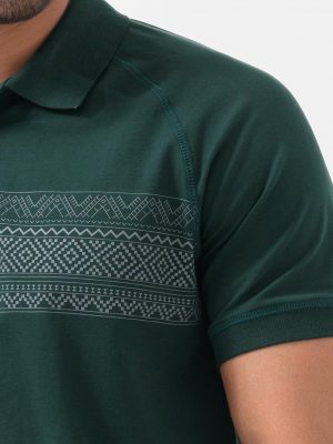 All-over printed polo Shirt in Cotton Pique fabric, contrast tipping collar rib with herringbone design at placket.