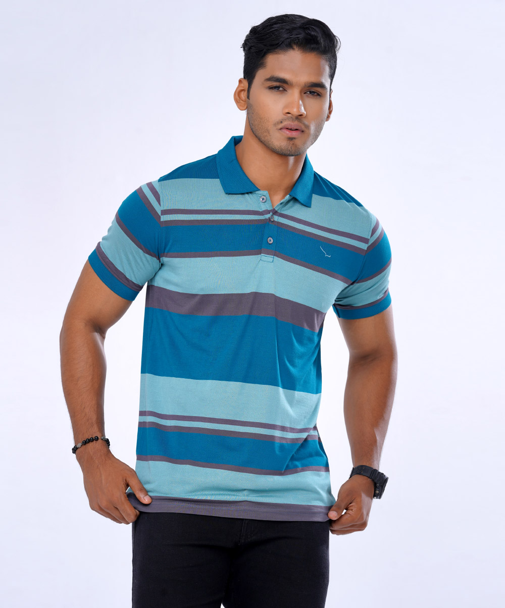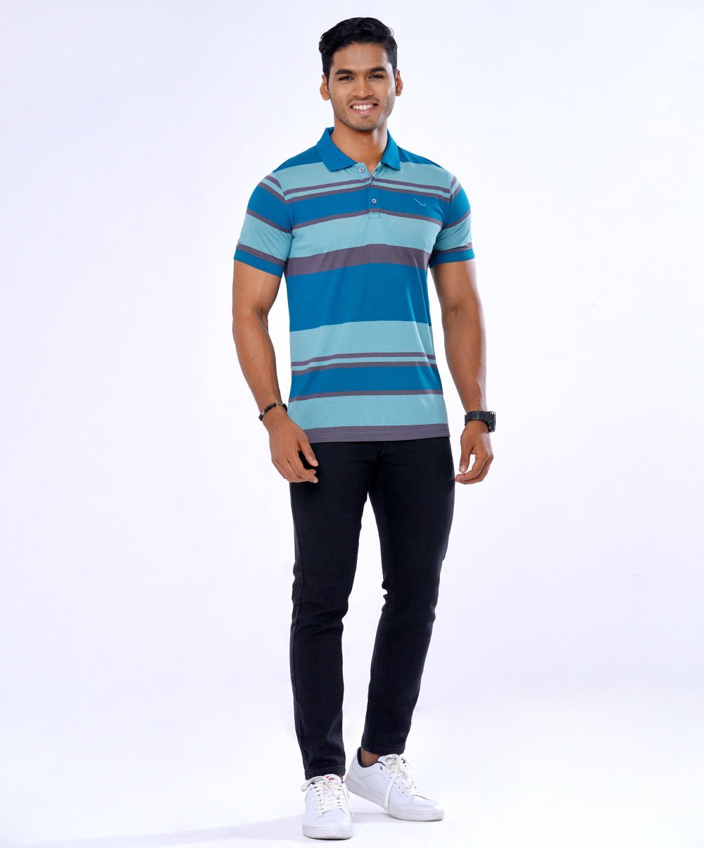 Multi-Color Cotton Stripes Polo Shirt