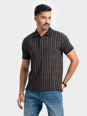 Black Polo Shirt in Cotton pique fabric. Designed with a classic collar, short sleeves, and a logo embroidered on the chest. Contrast tipping at collar and cuffs.