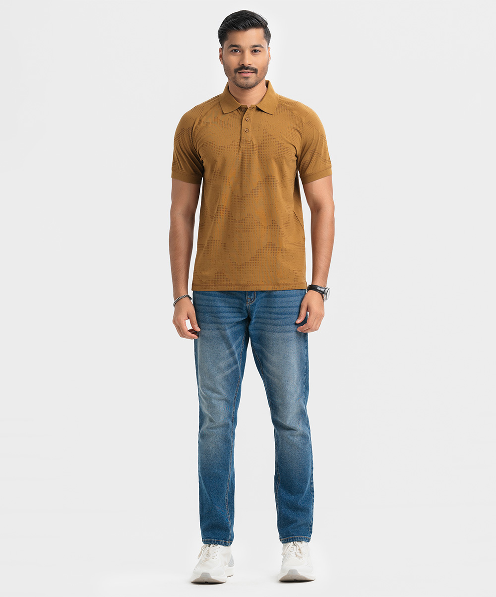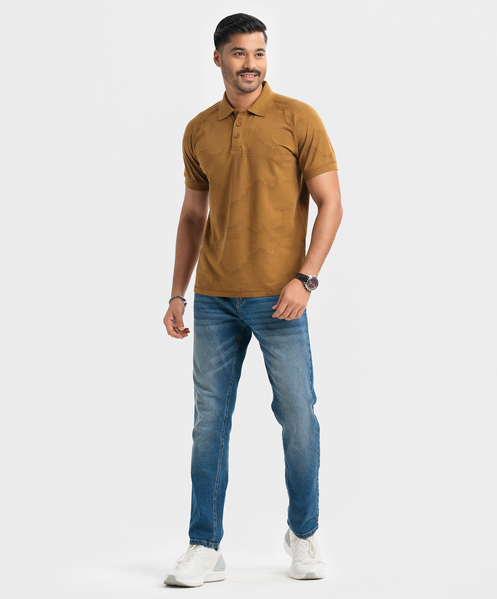 Men’s short-sleeved polo in stretchable cotton fabric. Classic collar with straight hem.