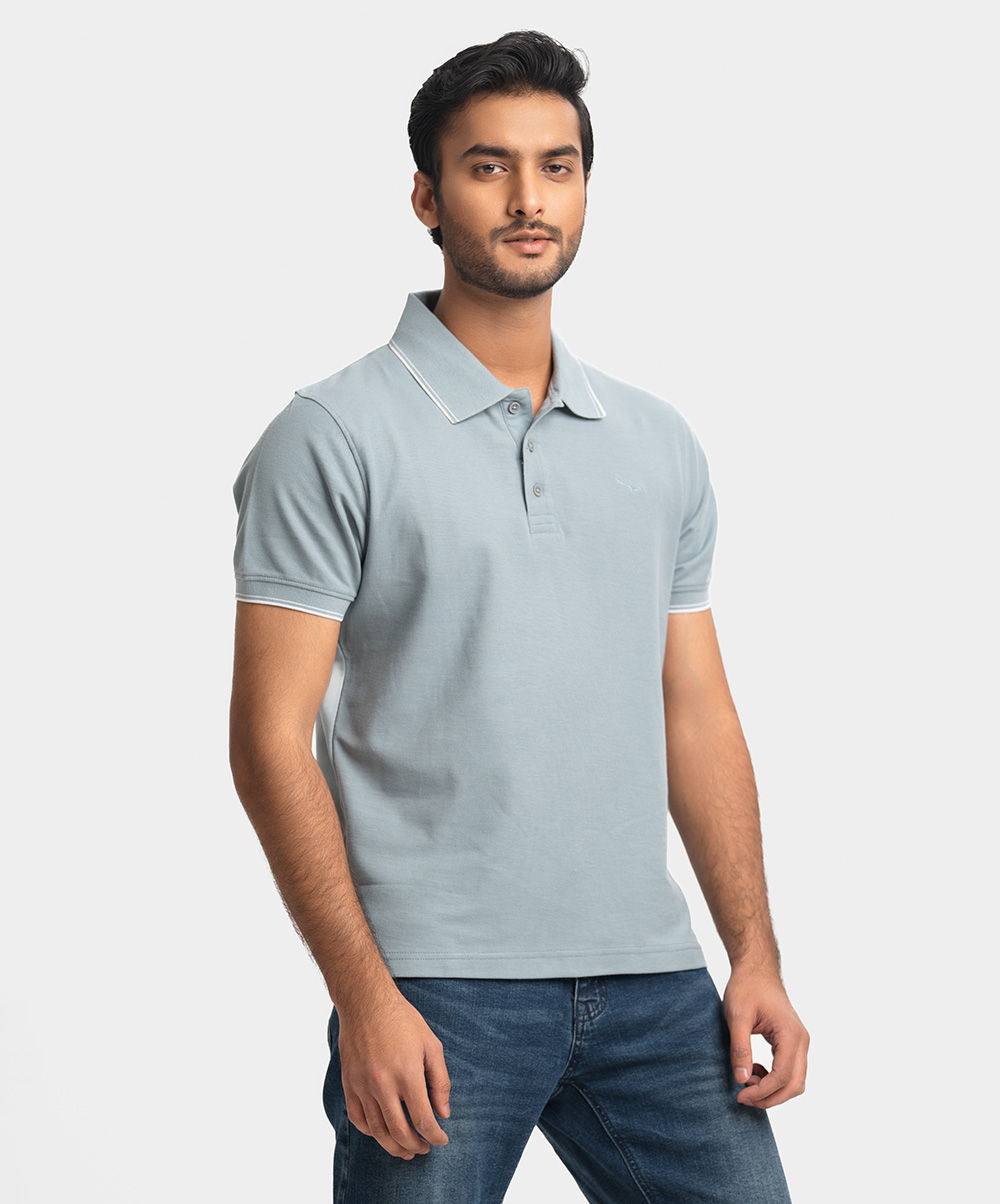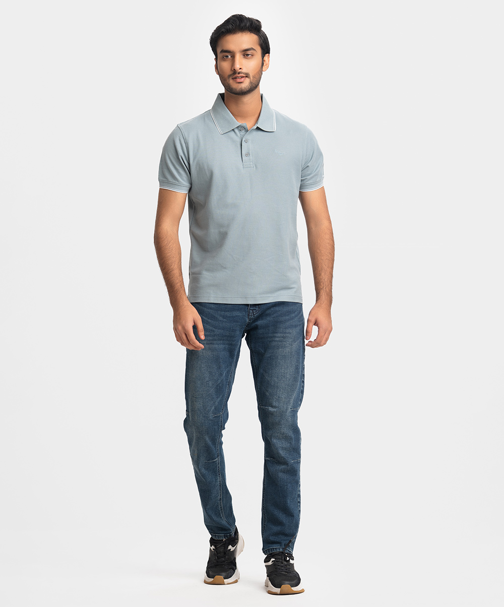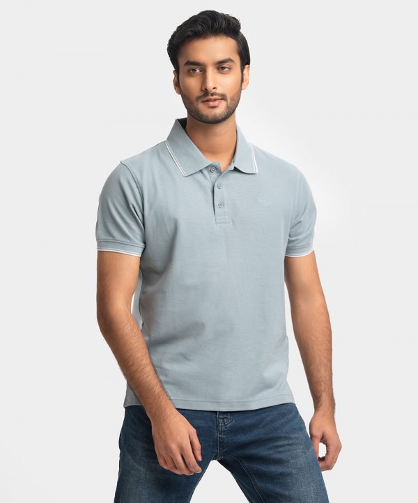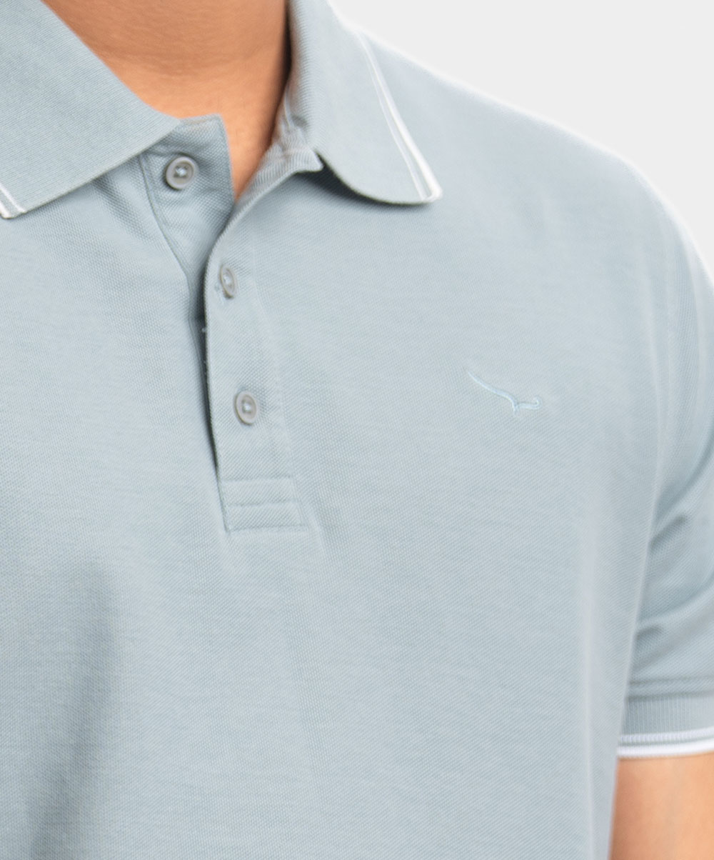 Men’s polo in stretchable cotton pique fabric. Classic rib collar, short sleeves with straight hem.
