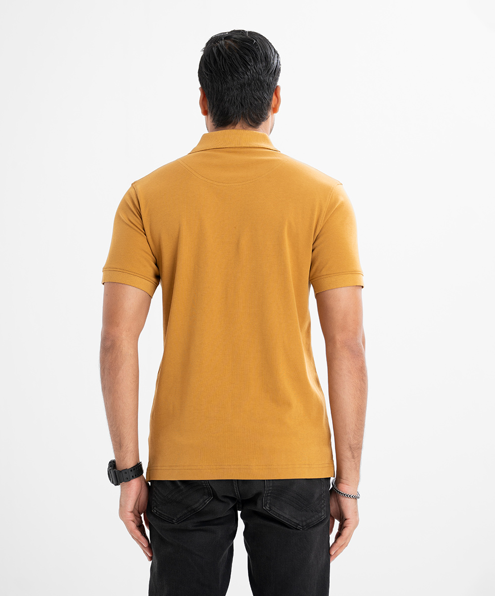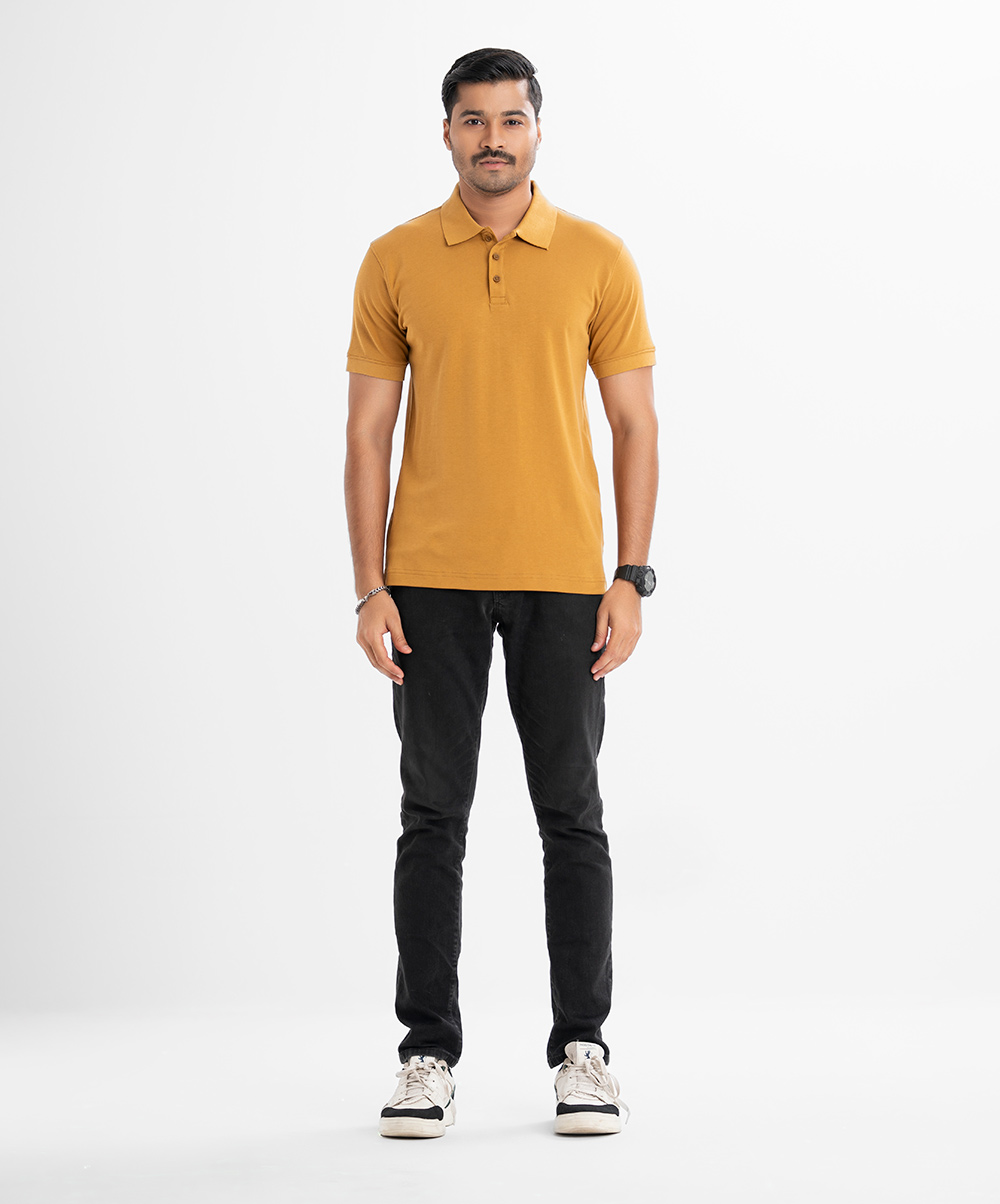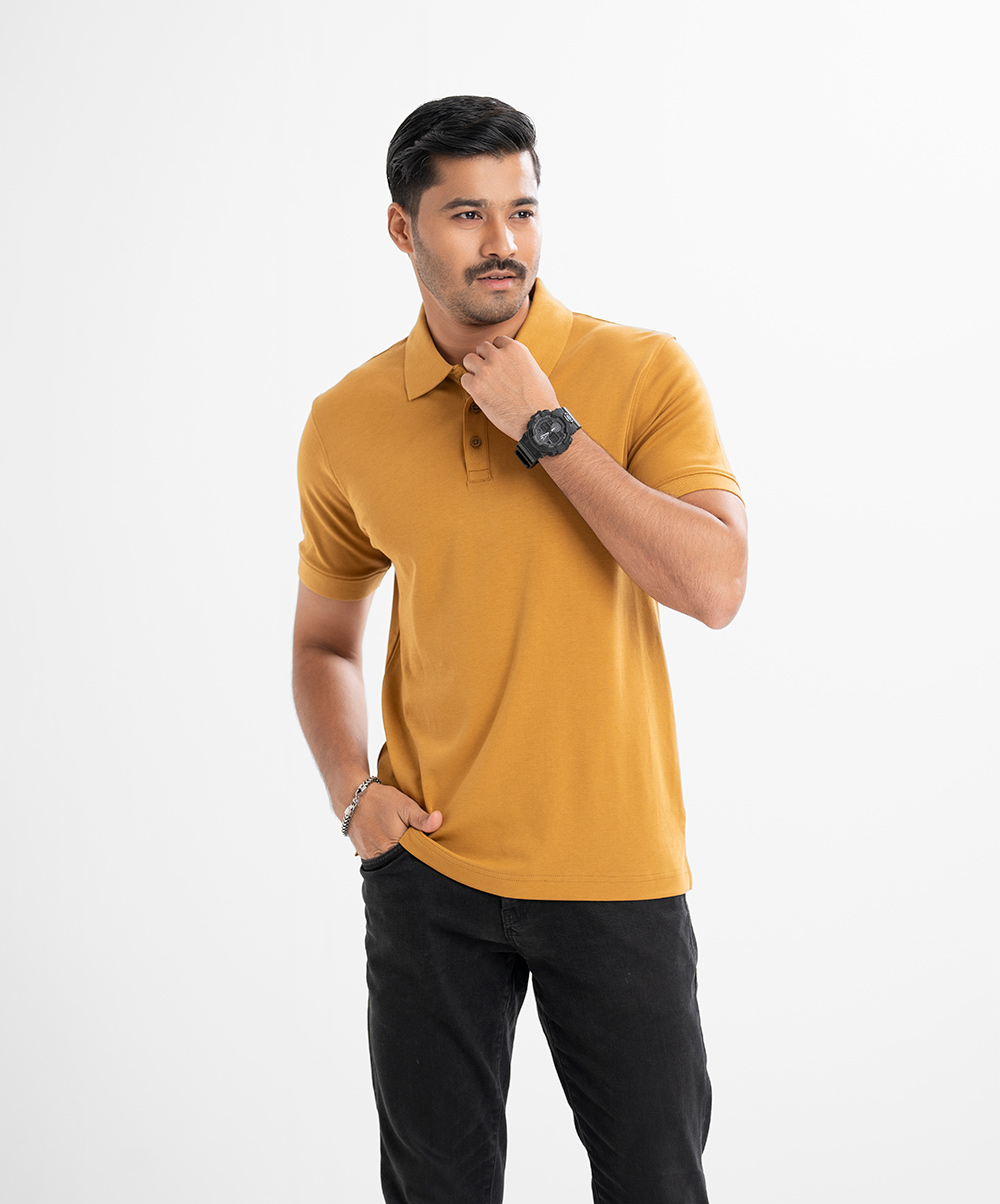 Men’s short-sleeved polo in interlock knit fabric. Classic collar with straight hem.