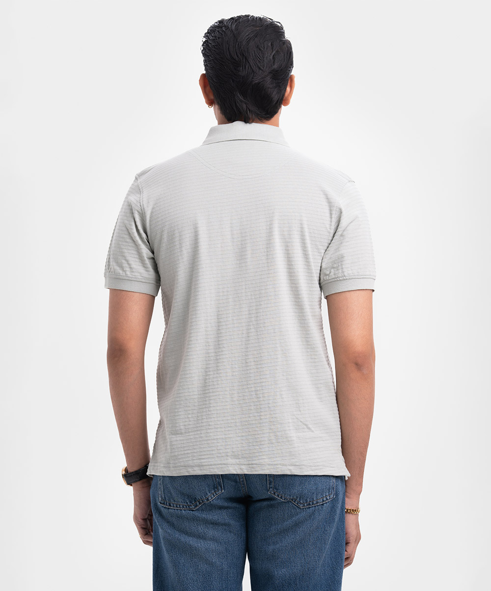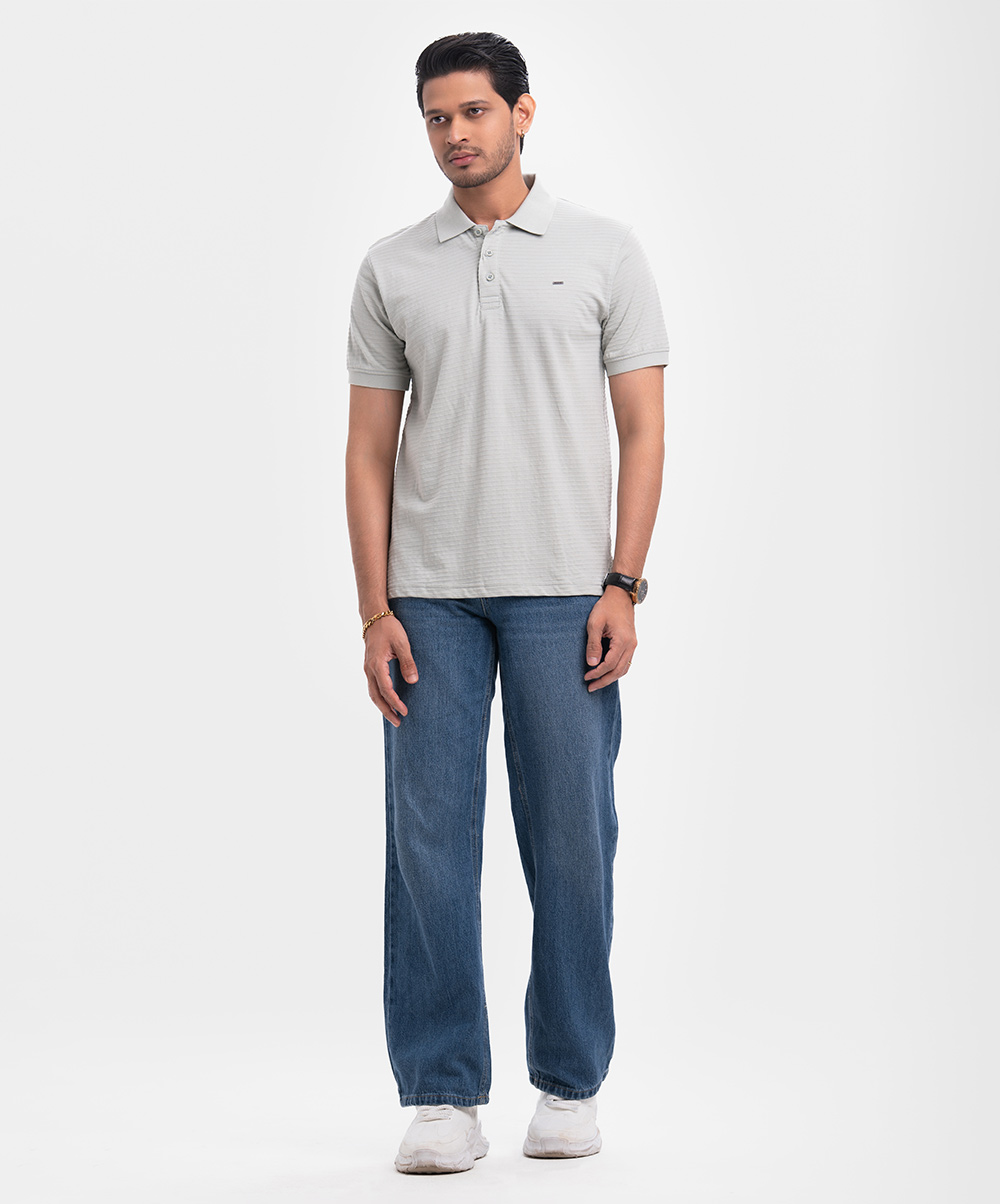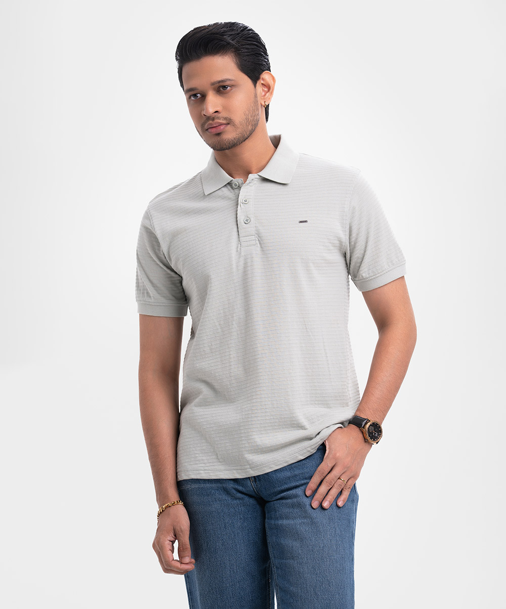 Men’s short-sleeved polo in jacquard cotton fabric. Classic collar with straight hem.