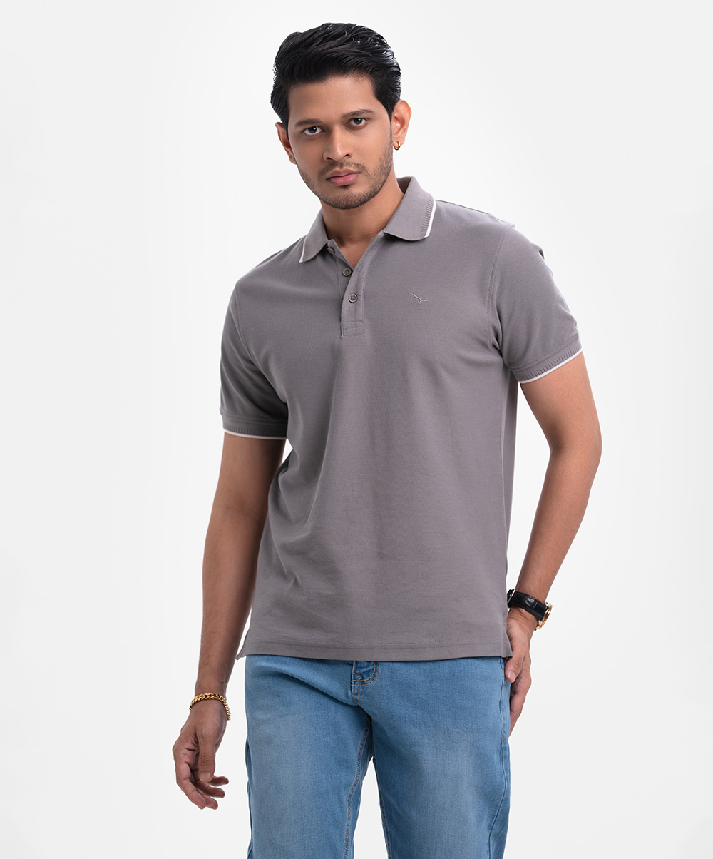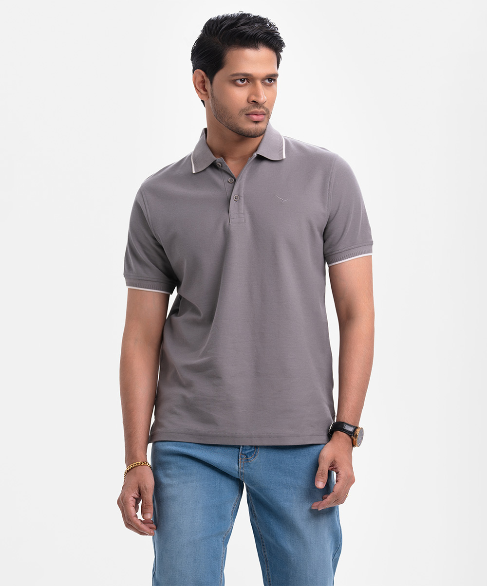 Men’s polo in stretchable cotton pique fabric. Classic rib collar, short sleeves with straight hem.