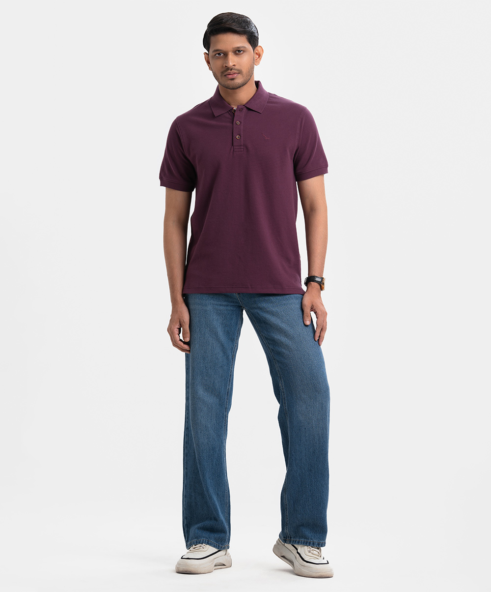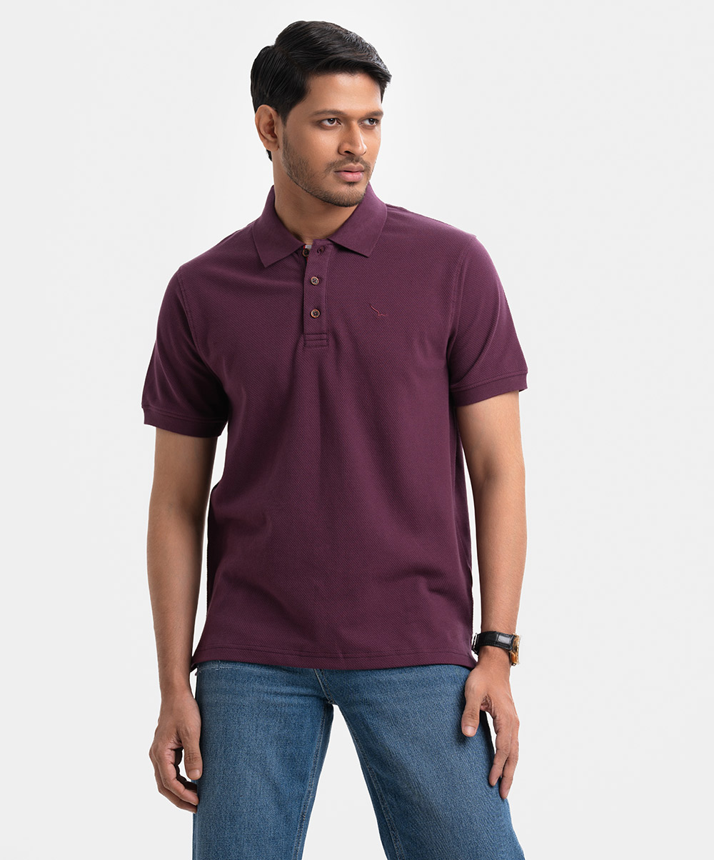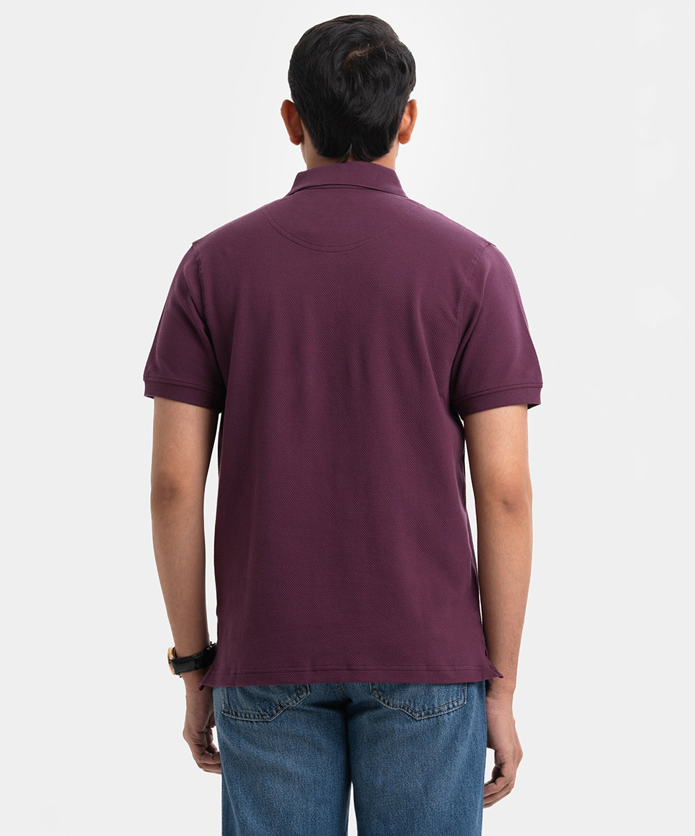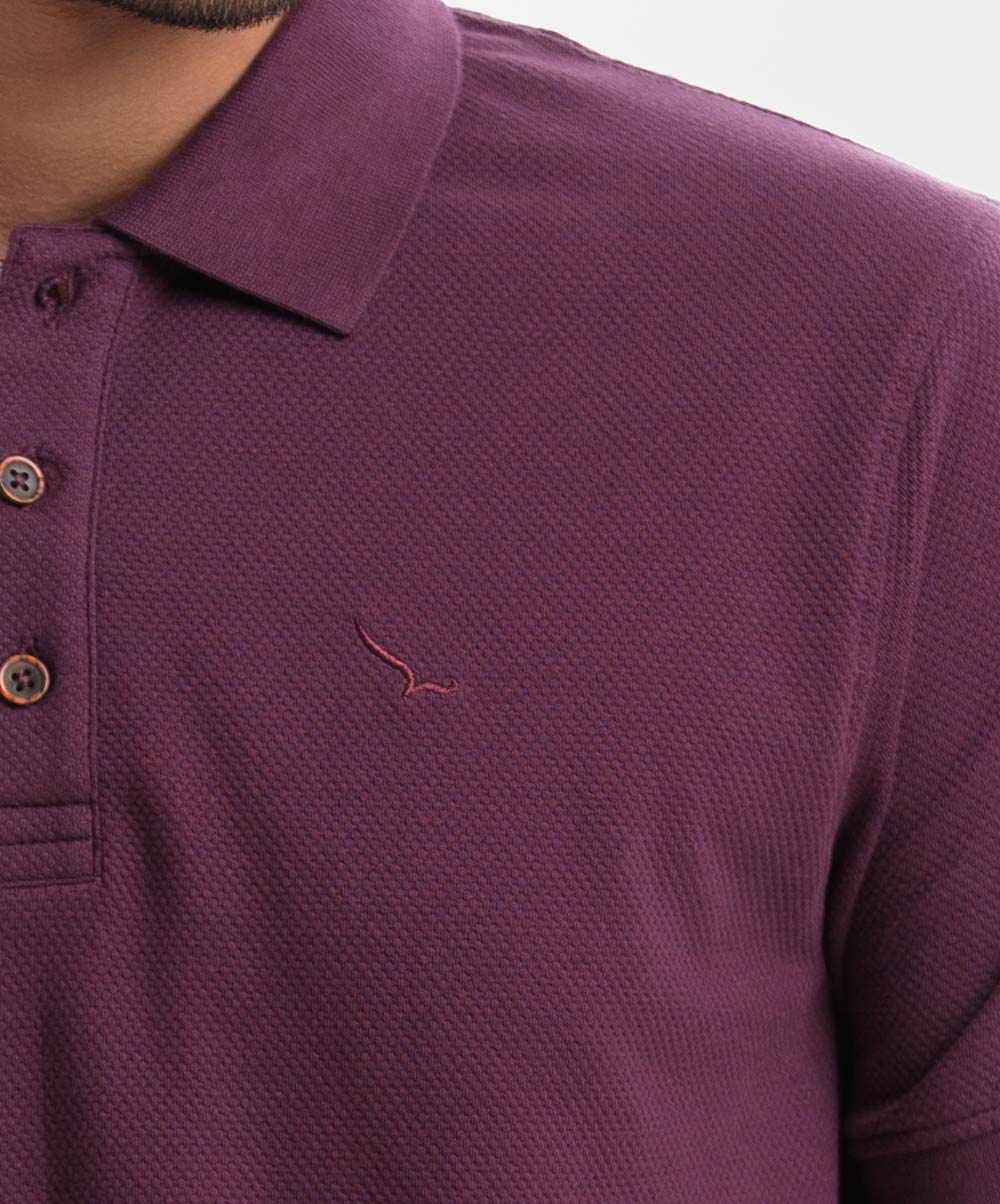 Men’s short-sleeved polo in bubble knit cotton fabric. Rib collar with straight hem.