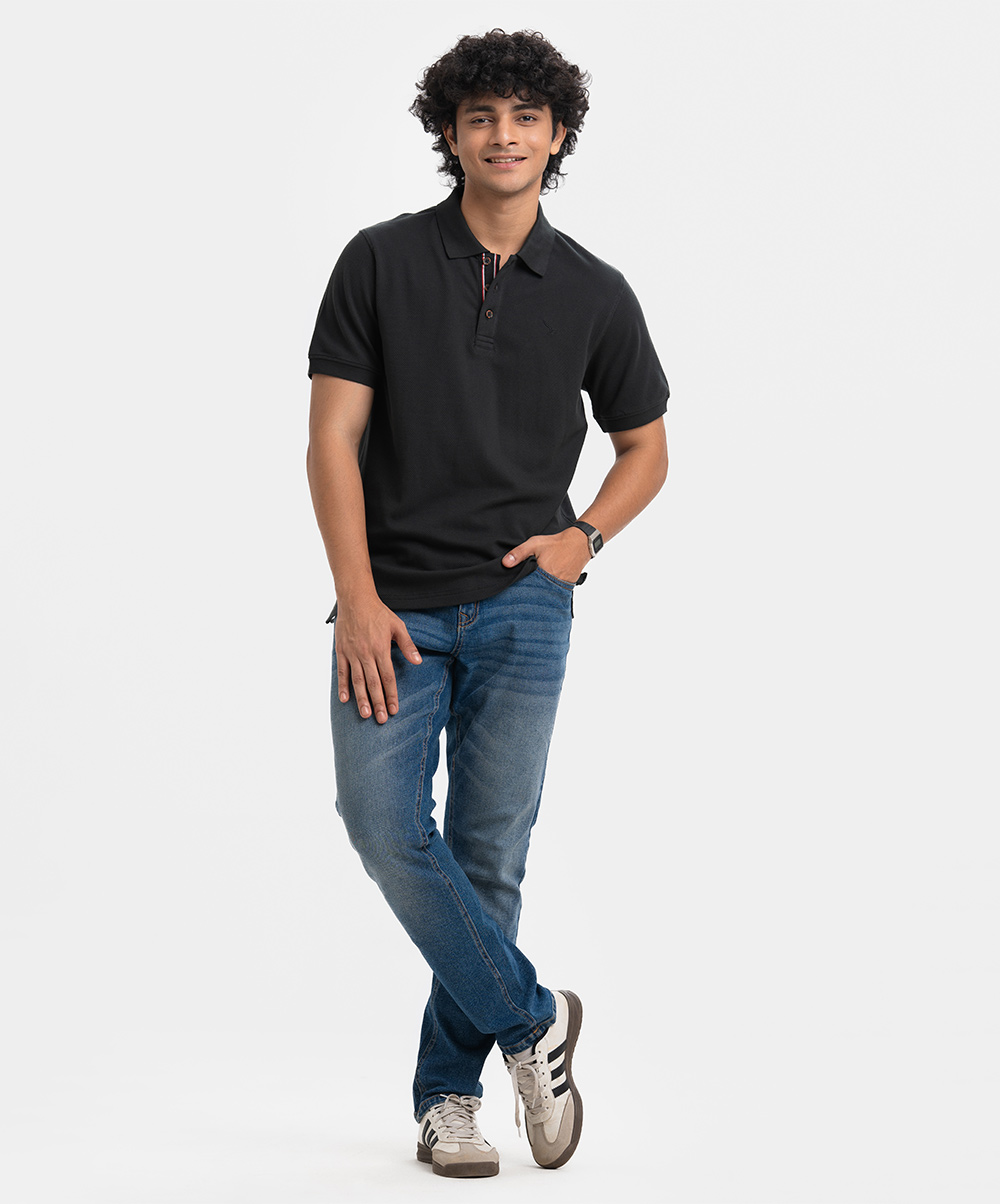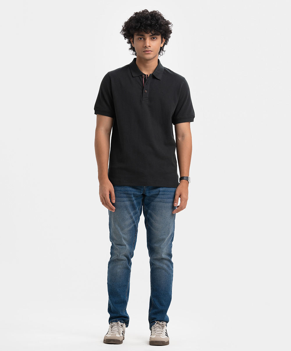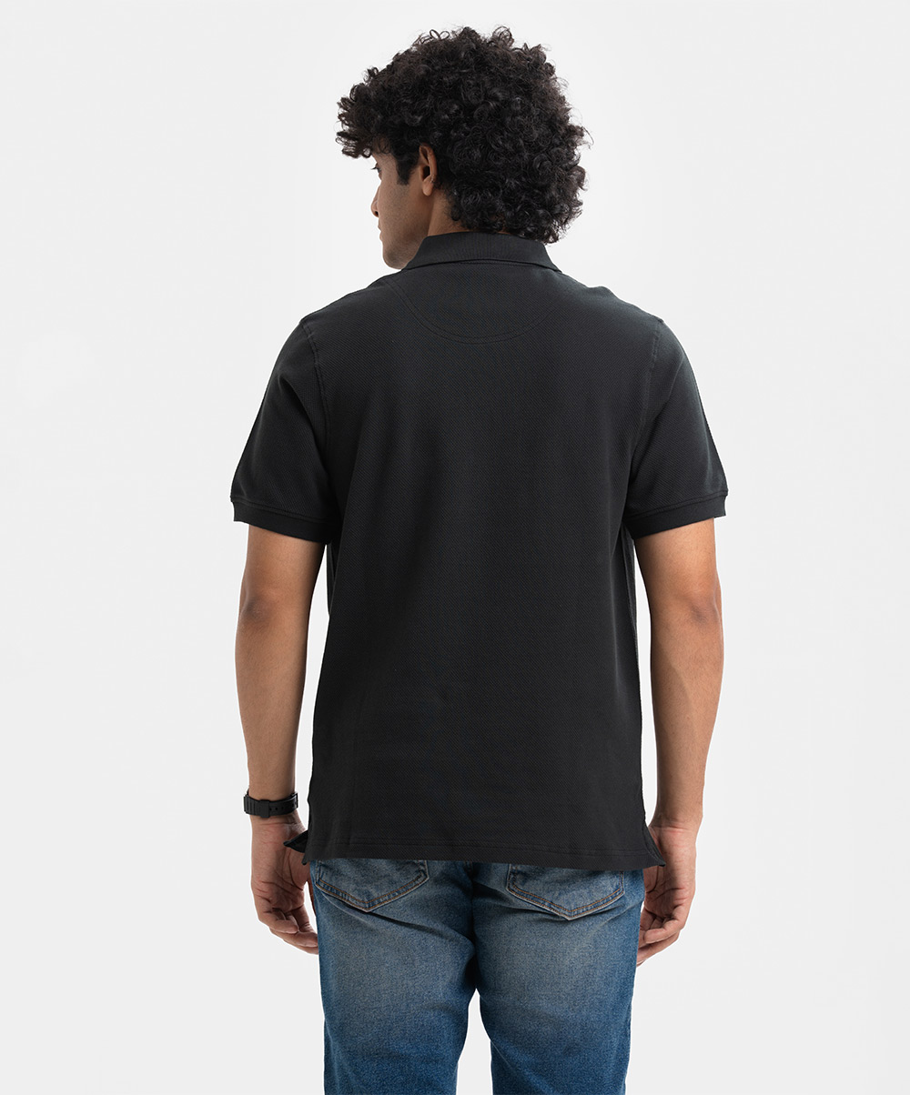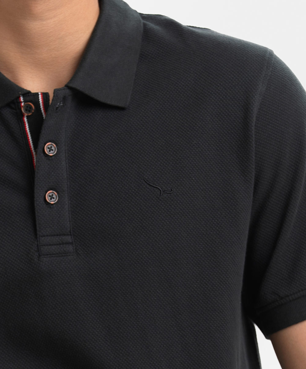 Men’s short-sleeved polo in bubble knit cotton fabric. Rib collar with straight hem.