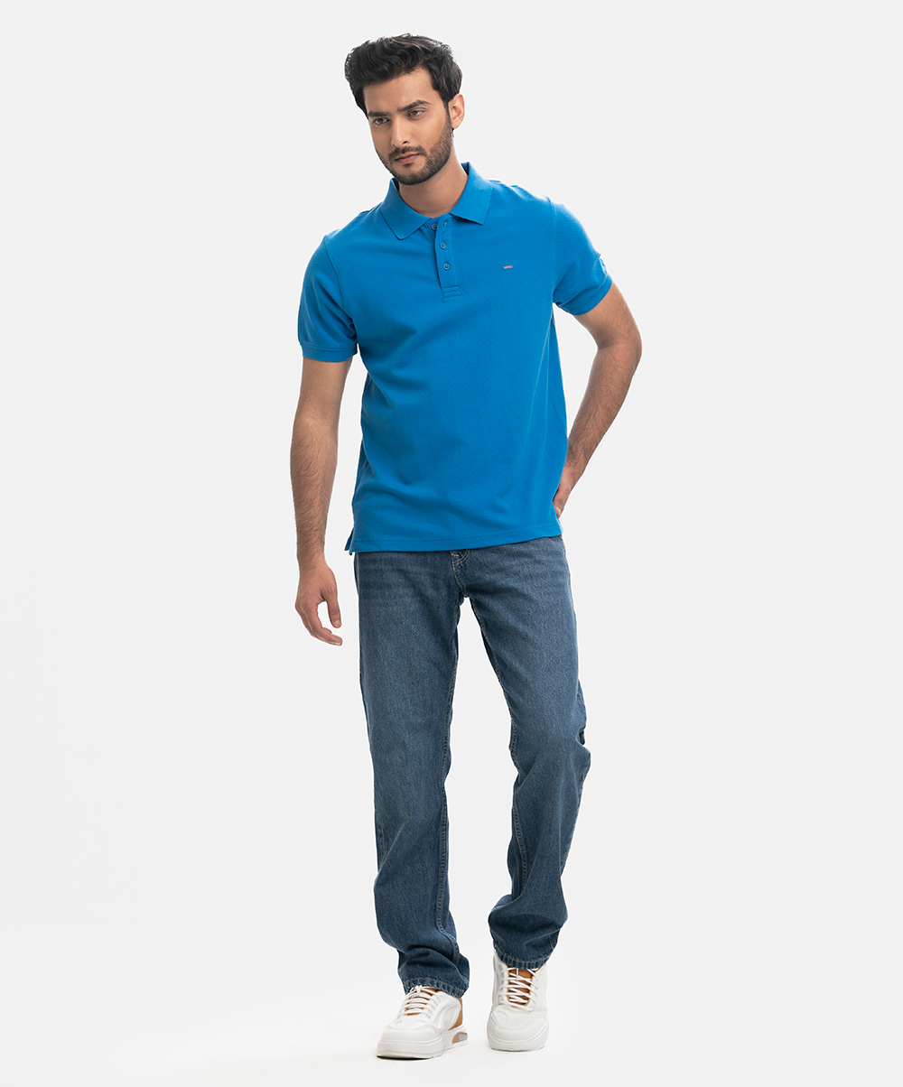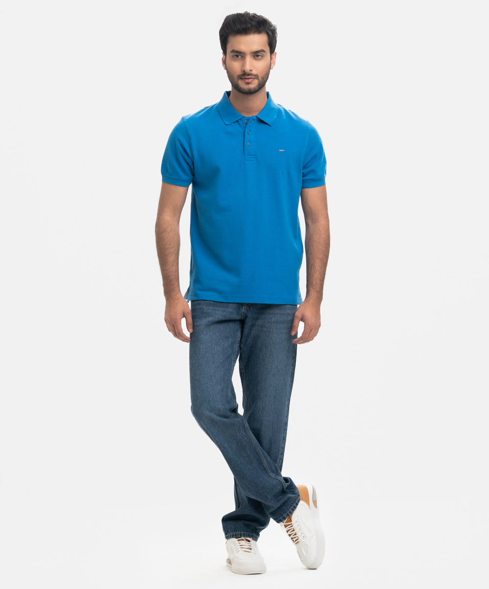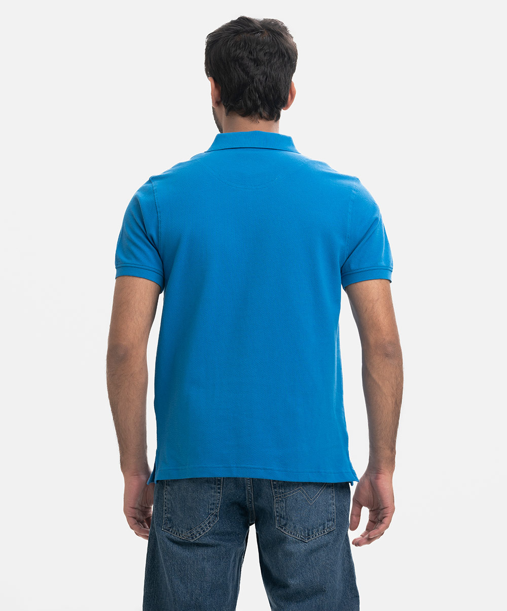 Men’s polo in cotton bubble knit fabric. Classic rib collar, short sleeves with straight hem.