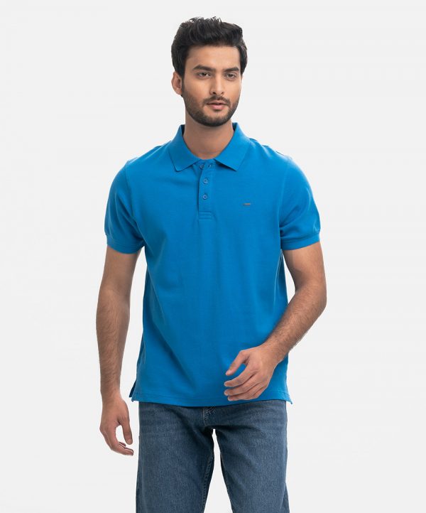 Men’s polo in cotton bubble knit fabric. Classic rib collar, short sleeves with straight hem.