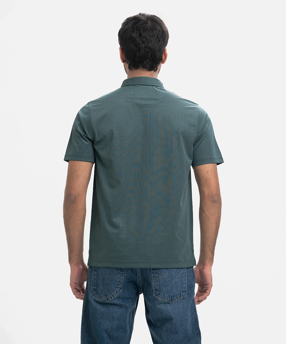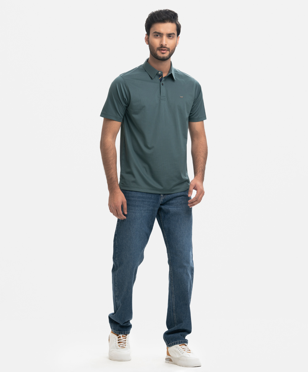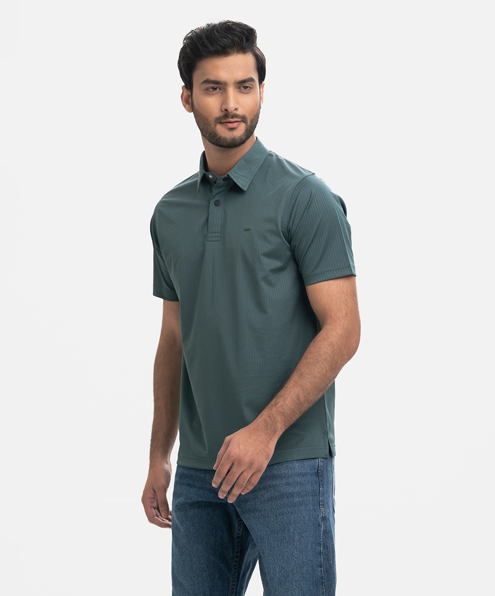 Men’s polo in stretchable jacquard knit fabric. Classic collar, short sleeves with straight hem.