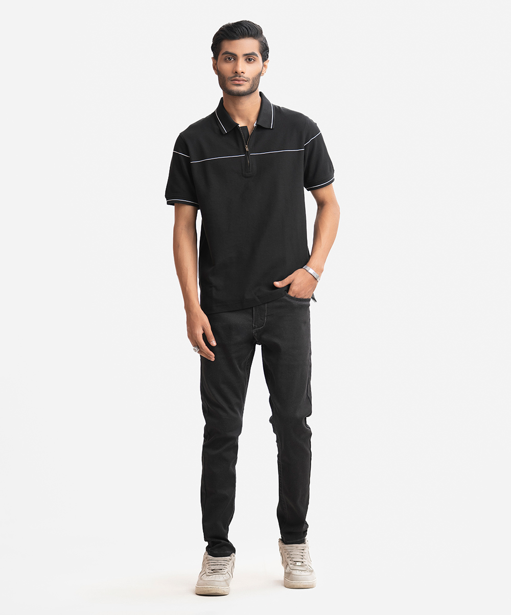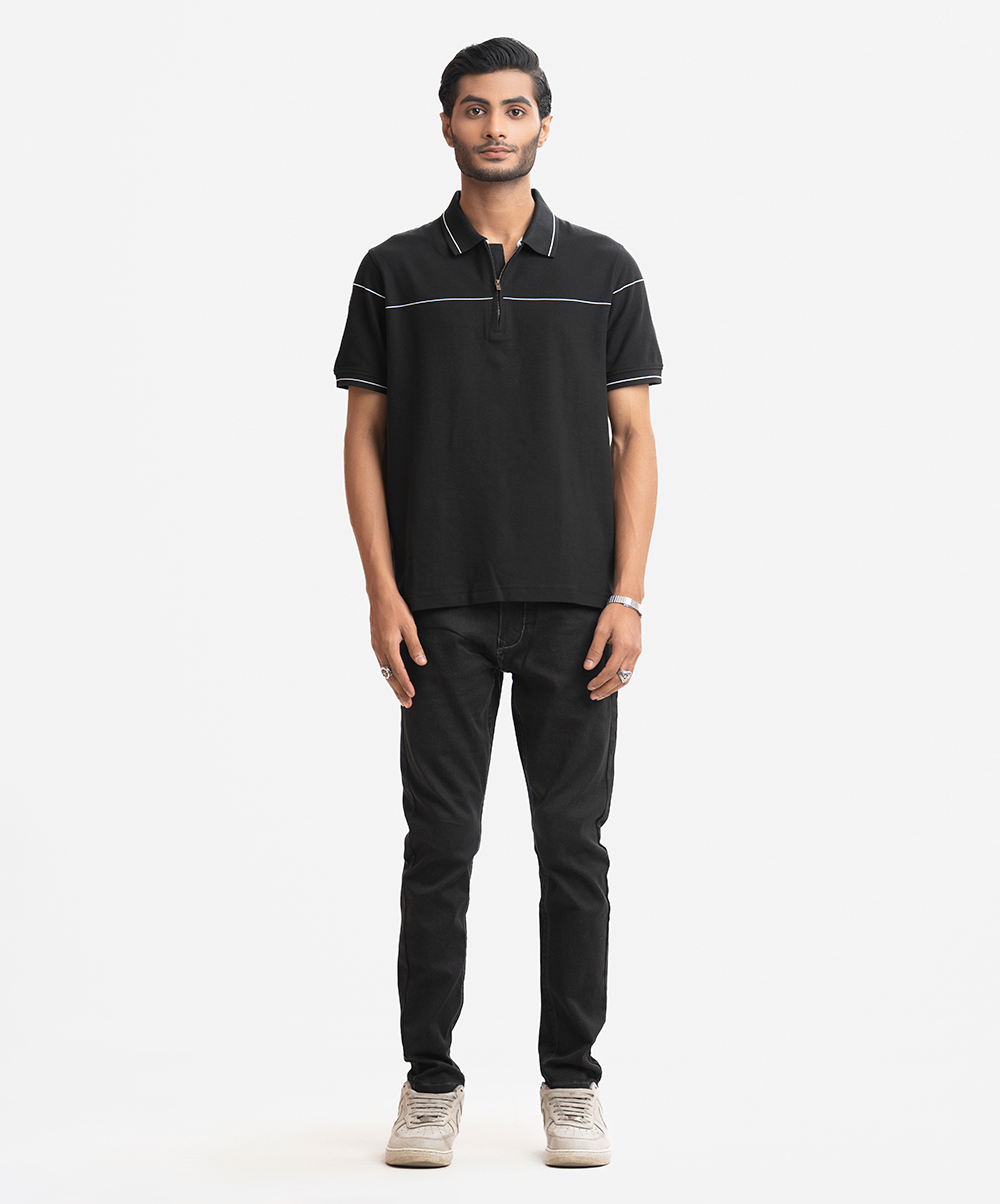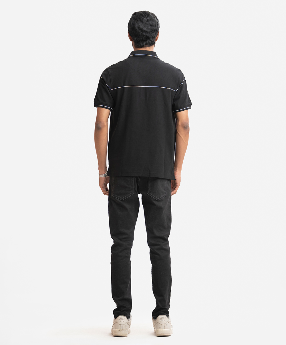 Black Cotton Pique Polo