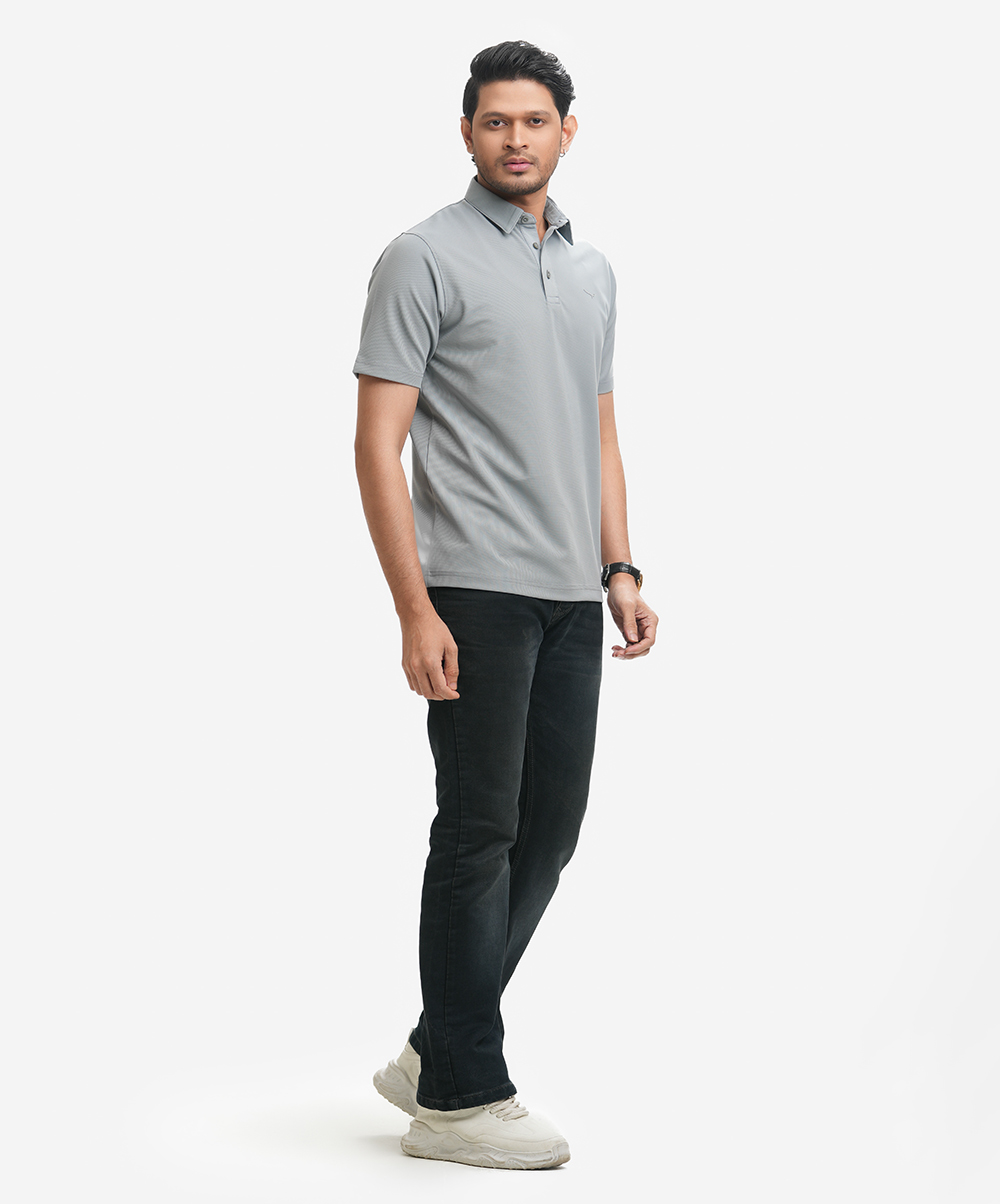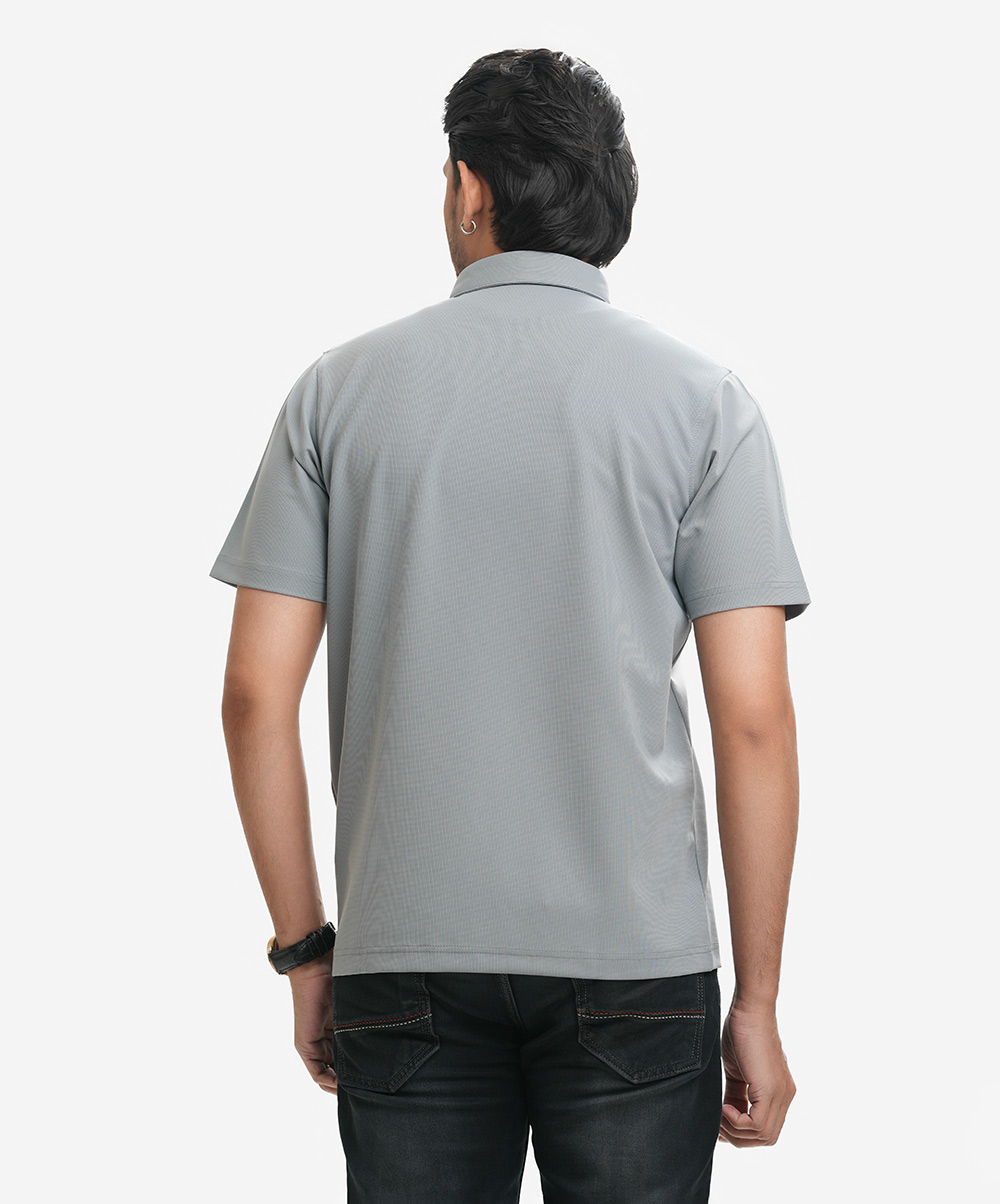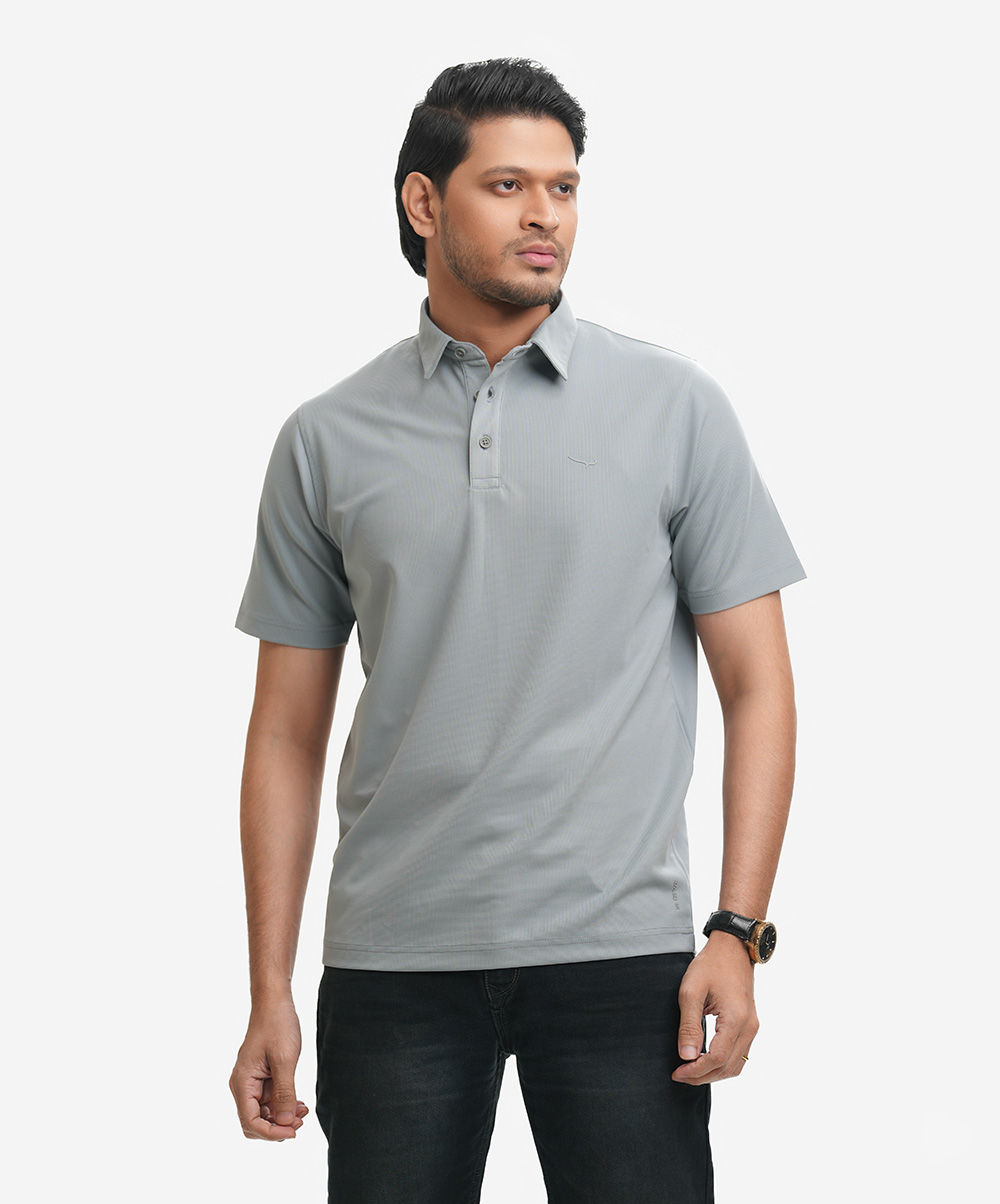 Gray Cotton Pique Polo