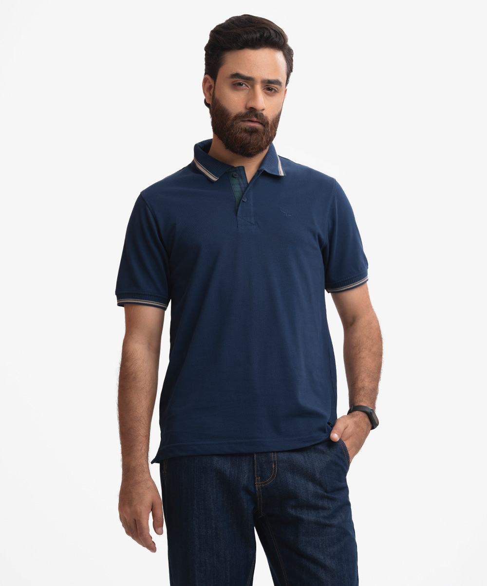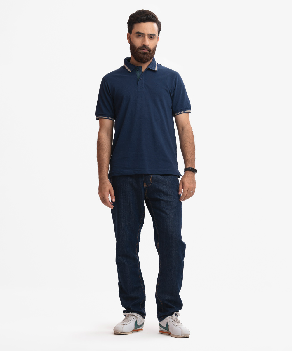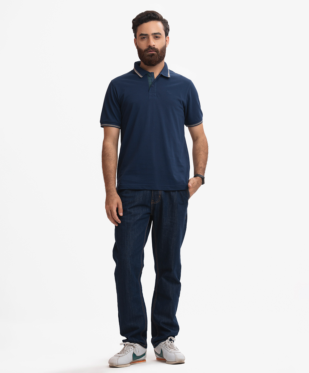 Navy Blue Cotton Pique Polo